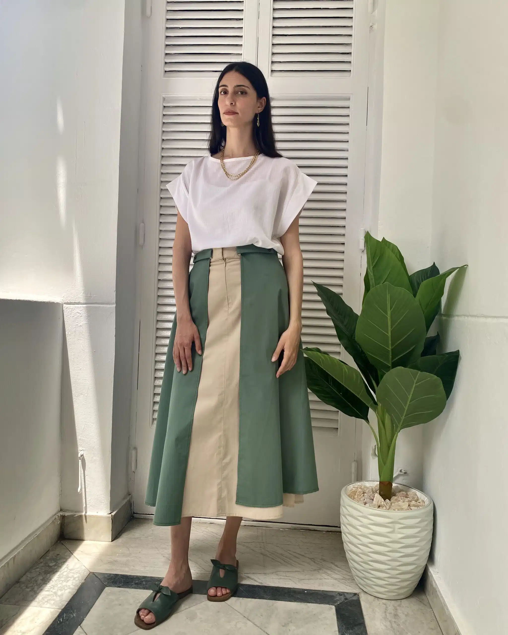 The joker in any wardrobe. Use the base alone with a simple top for an elegant everyday look or the office. Add some punch to your look with the top layers in one color or two.