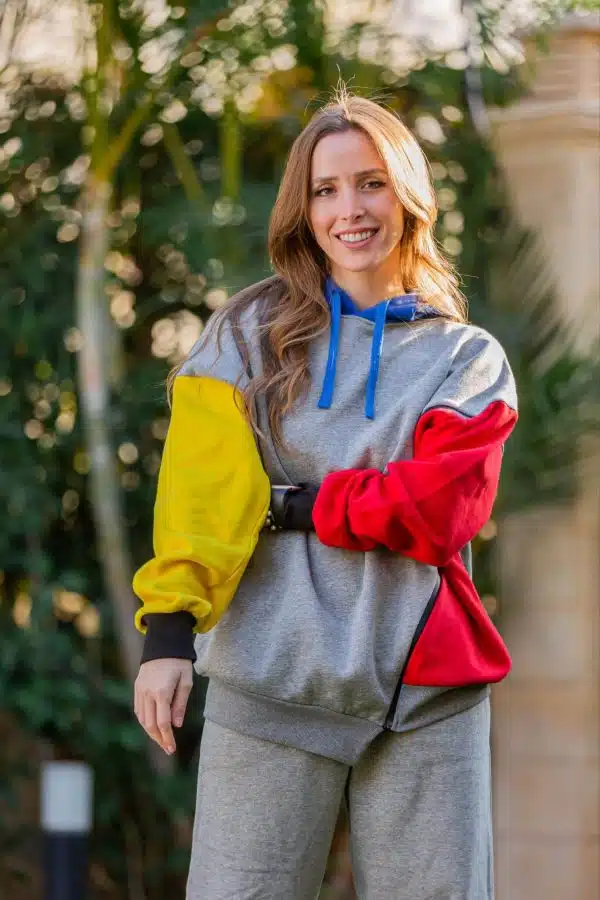 - Yellow sleeve – Red Sleeve – Blue hoodie
