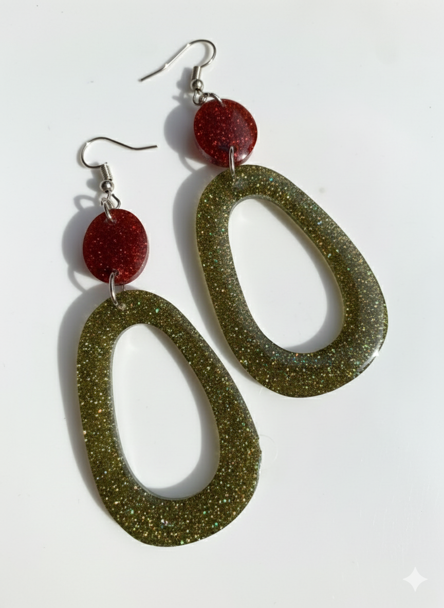 The multi-dimensional glitter embedded in the resin is designed to catch the warm glow of holiday lights, making them a standout accessory for Christmas parties.
