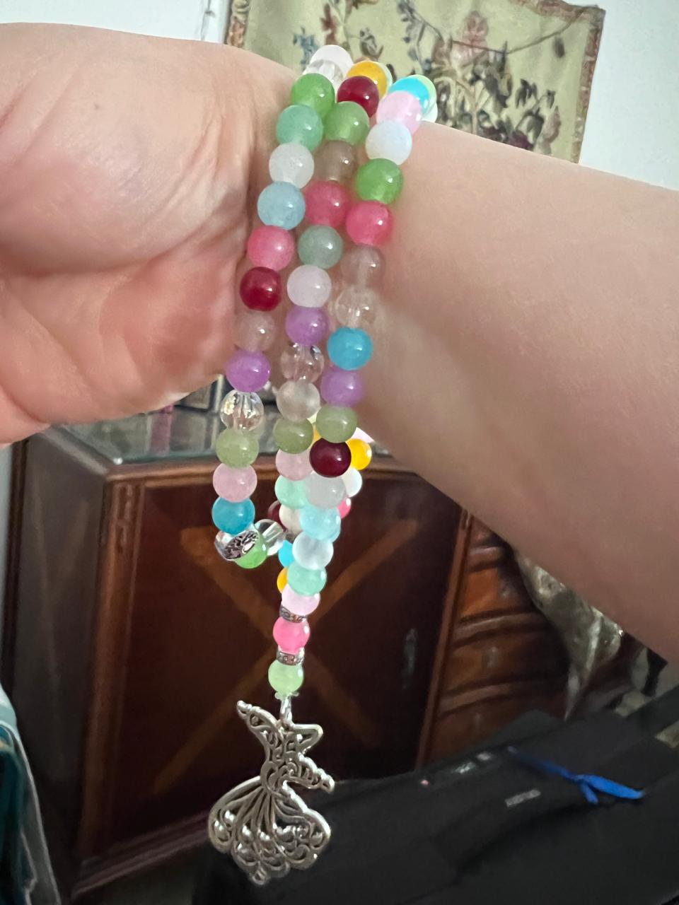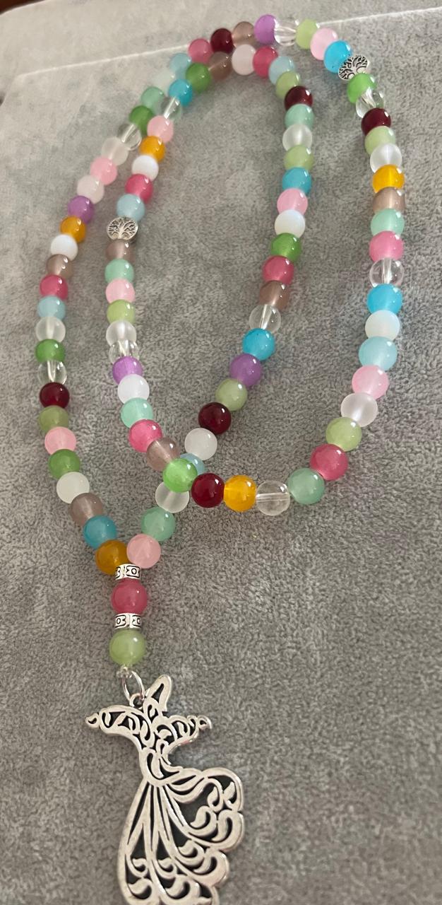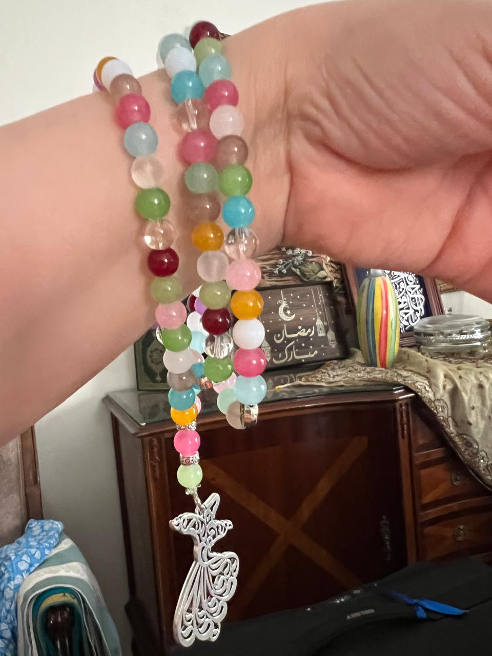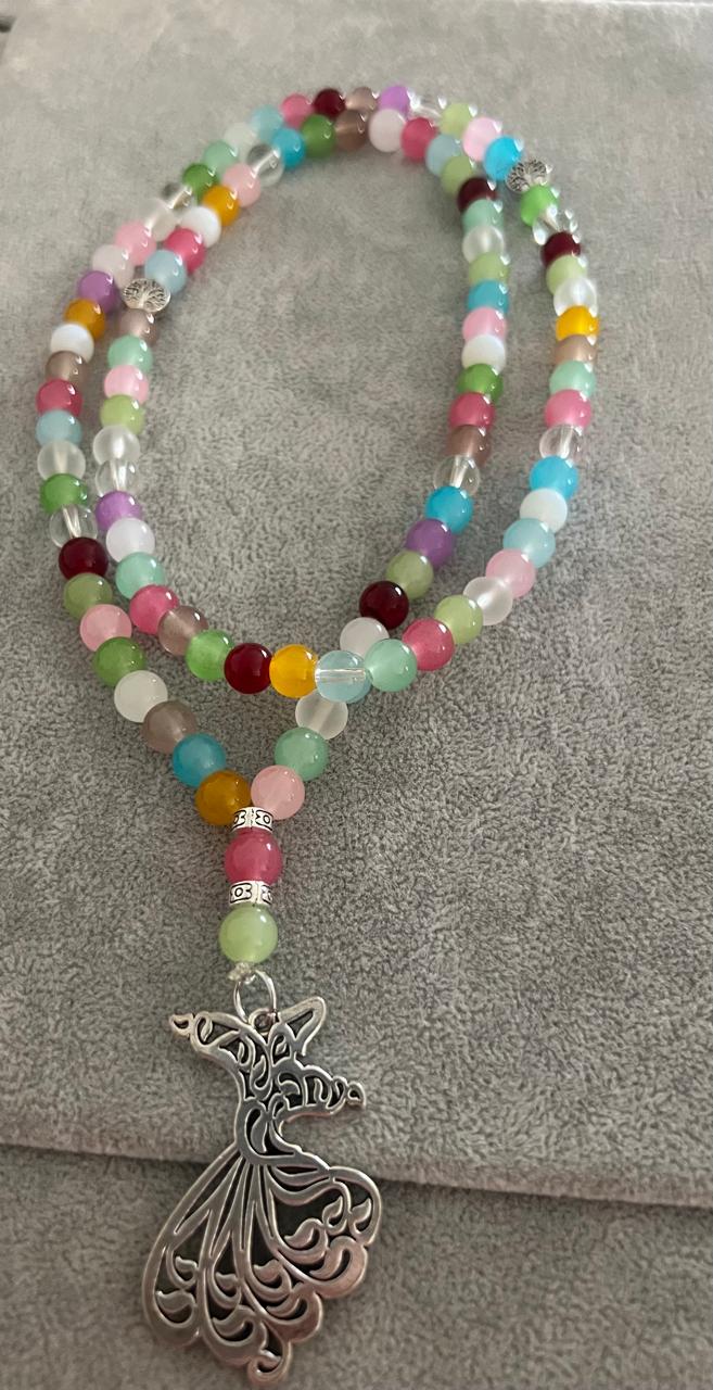 A graceful handcrafted Sebha designed with a blend of pastel and vibrant beads, creating soft yet lively color harmony. Each bead is thoughtfully arranged to bring a sense of balance, lightness and joy to the piece.