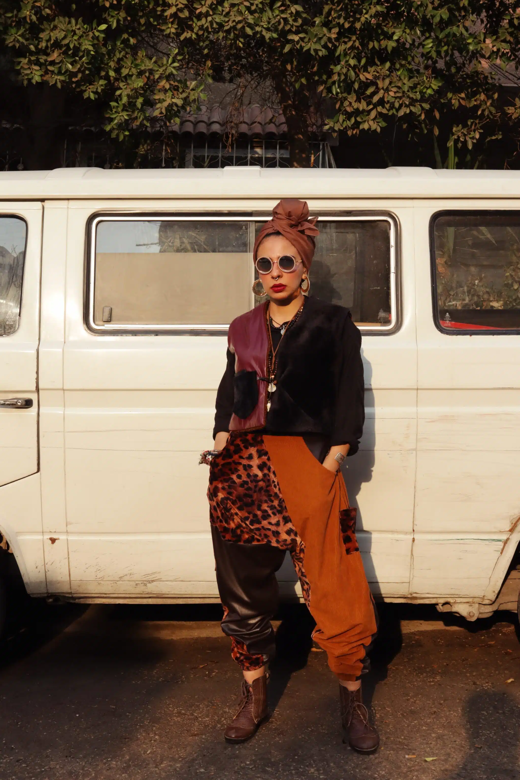 This pants is crafted from different fabrics with leather and corduroy to give you gypsy and hippie look, which can be worn with our patchwork vest or with shirt .