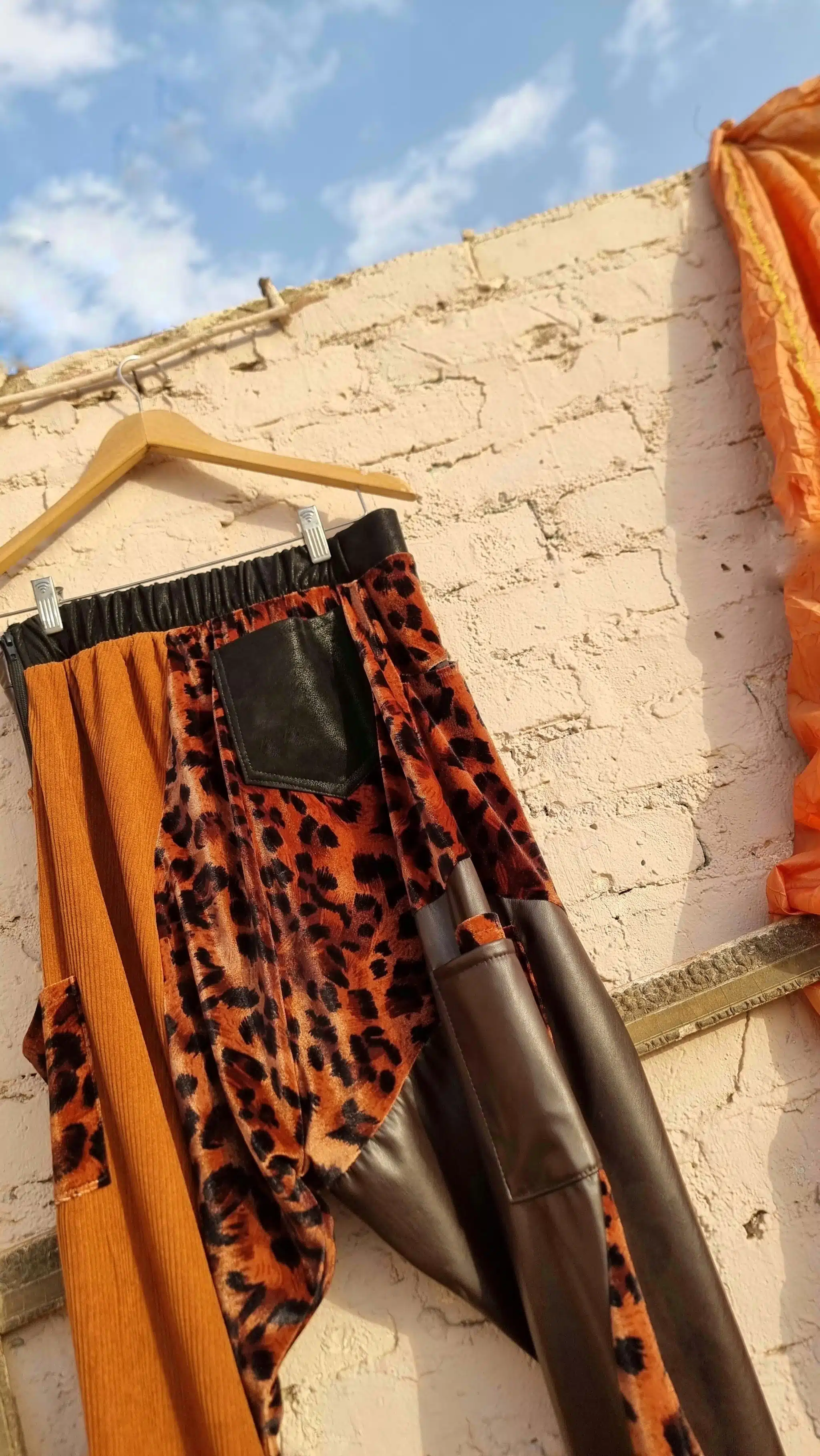 Patchwork handmade different fabrics, (leather – corduroy – velvet)