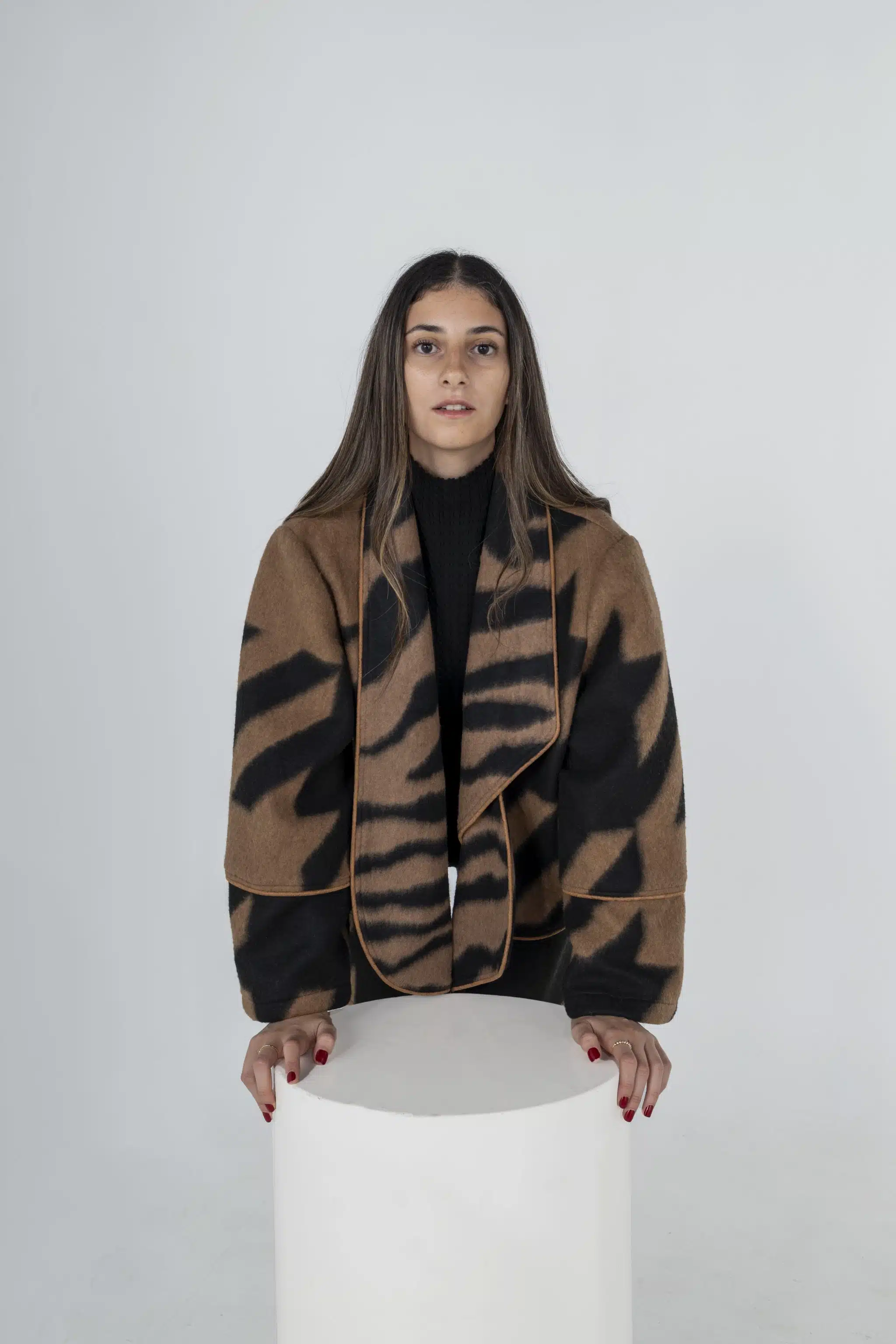 Pattern fur jacket, available in 3 sizes small, medium & large.