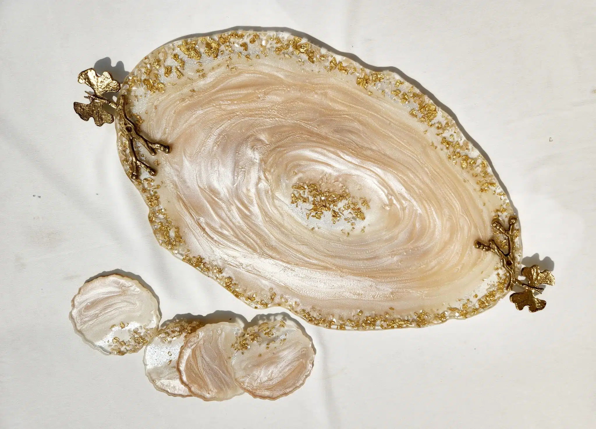 Best selling Bahgah decorative peachy paige coasters..light weighted durable made from resin inlaid with natural stones and crystals .