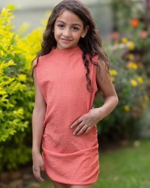 A chic Short Summer Dress with Draping on sides