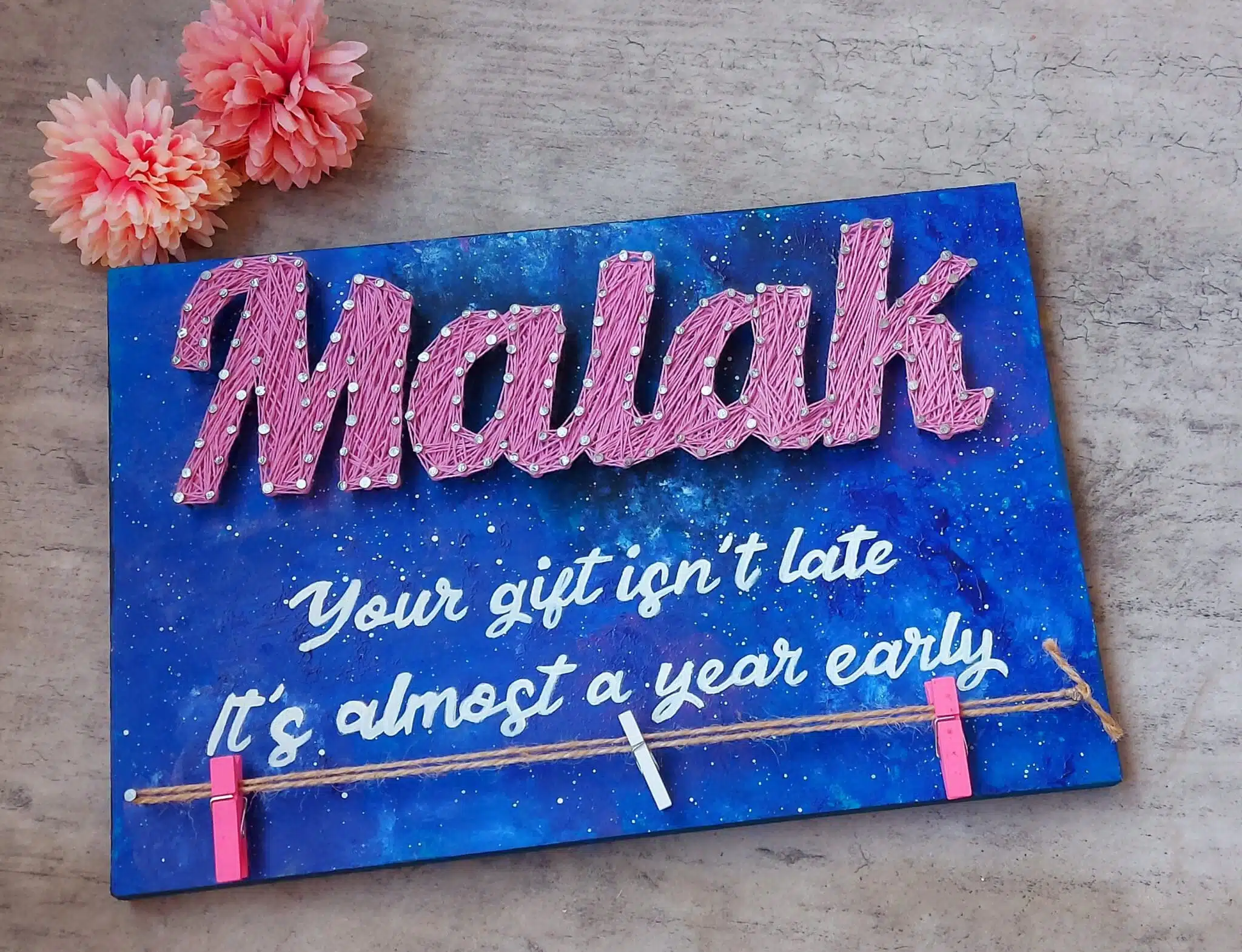 Handmade personalized board with photo hangers, to share with your loved ones.