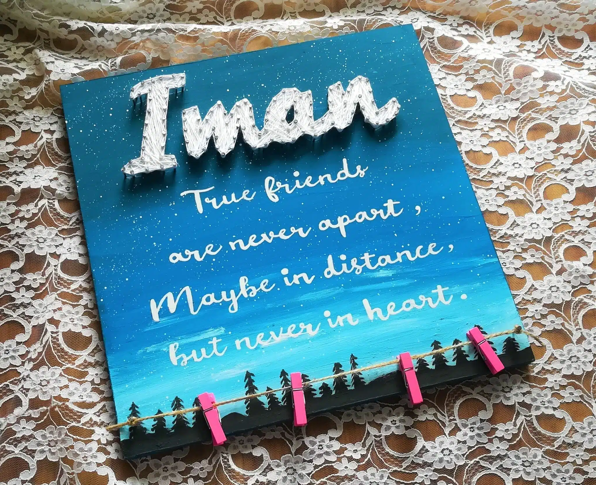 Handmade Personalized Board, with galaxy background and customized quote and photo hangers, to share with your loved ones