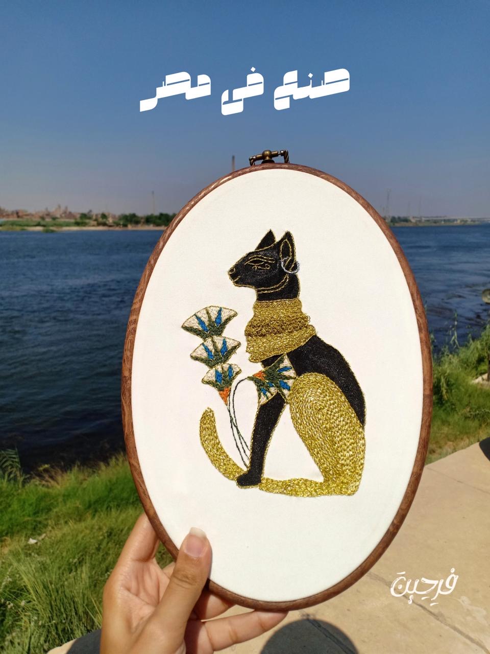 Entirely handcrafted, this piece combines embroidery and painting to create a unique artwork that brings a touch of Egyptian heritage into modern life.