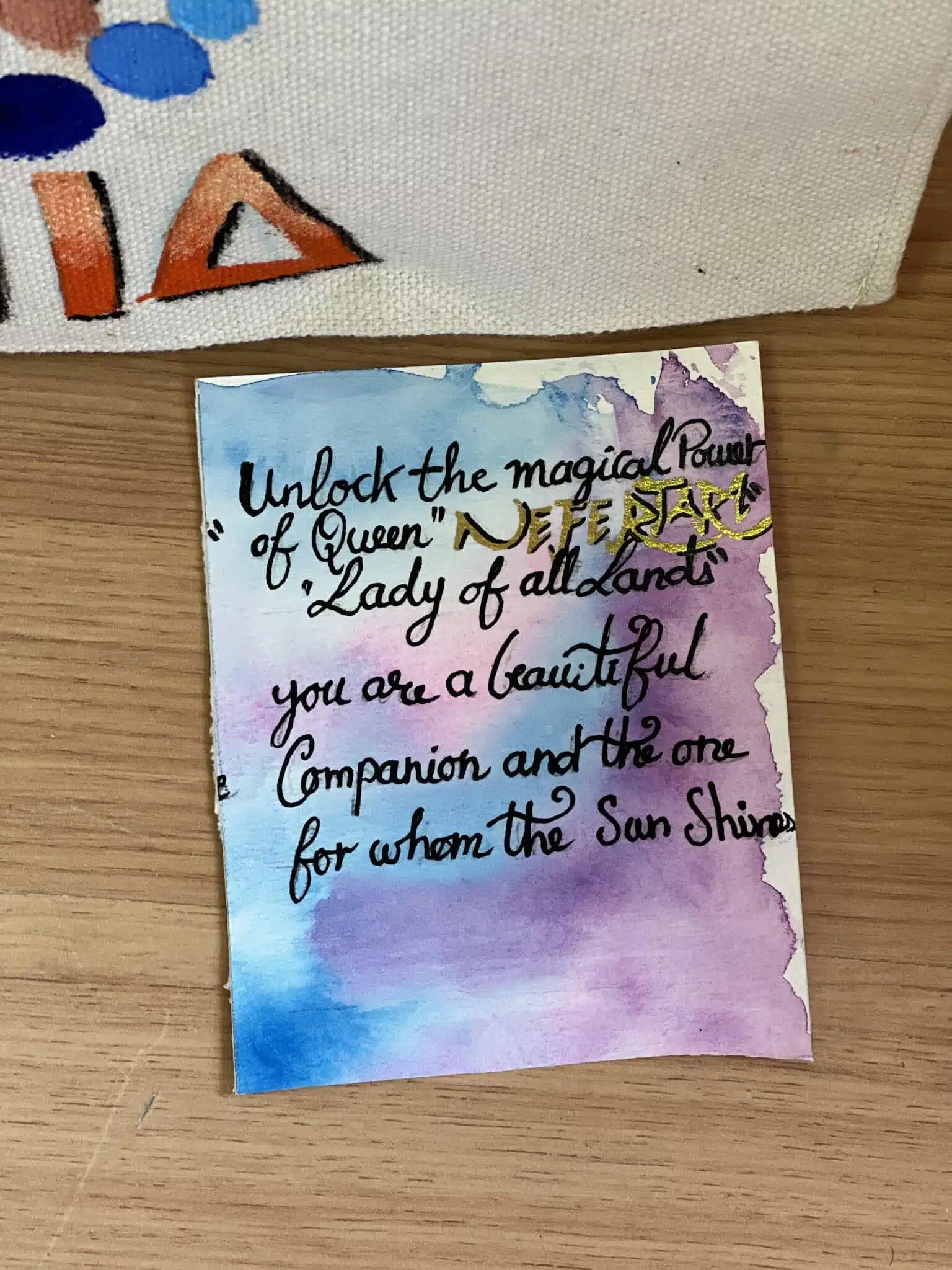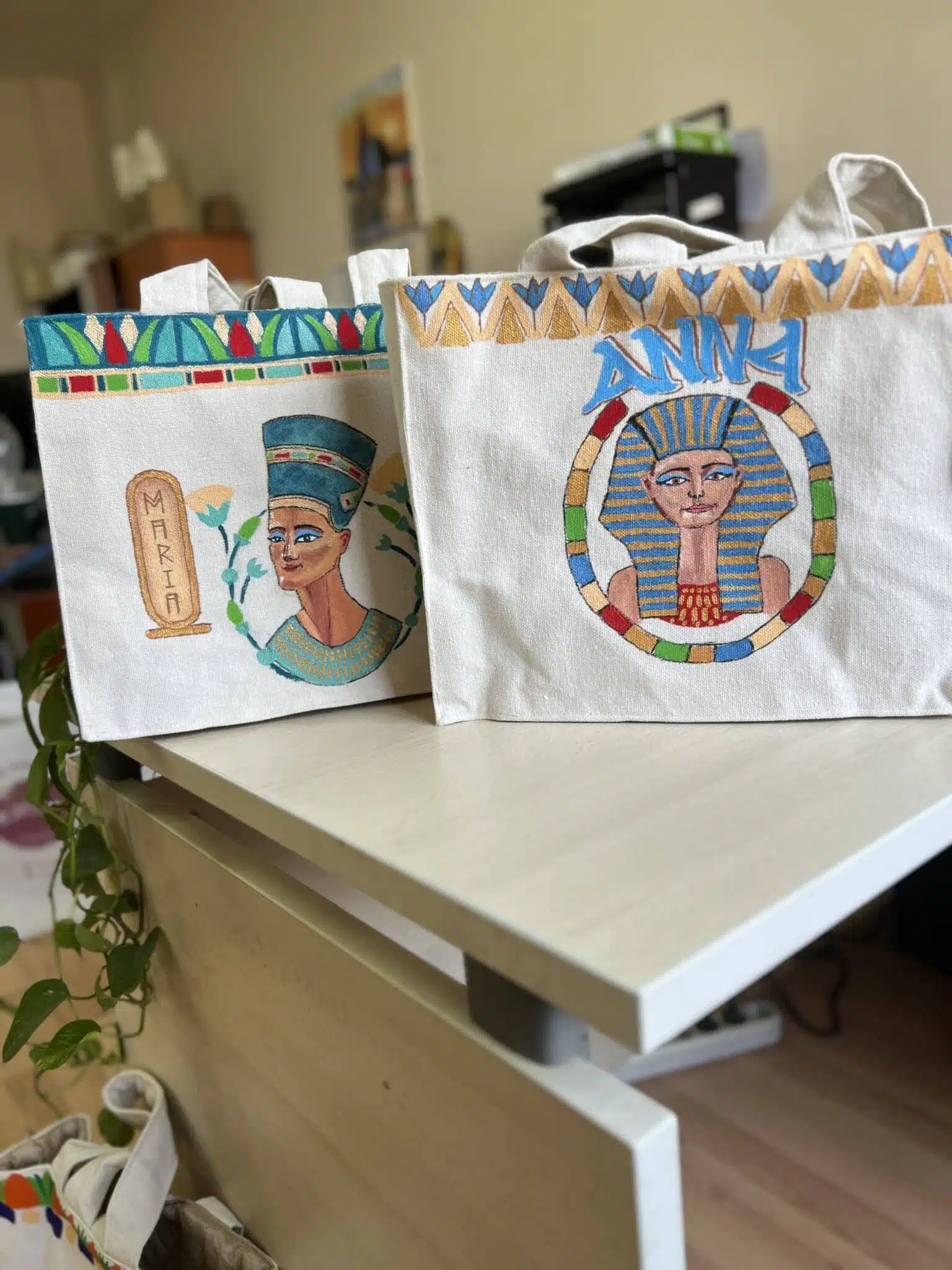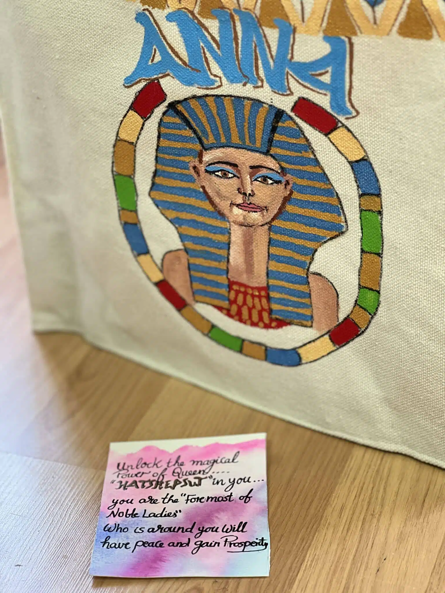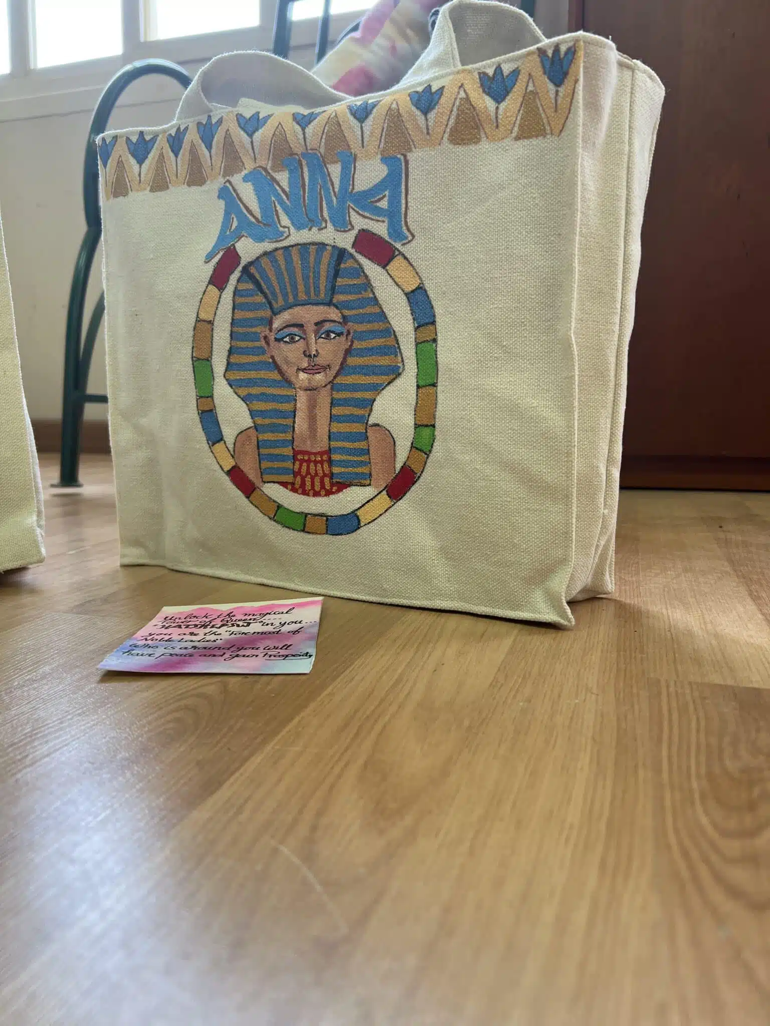 - A colorful hand painted Tote bag with your choice of name written on it in pharaonic style