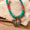 Brass pharaonic pendant in turquoise stones & red jasper & hematite.