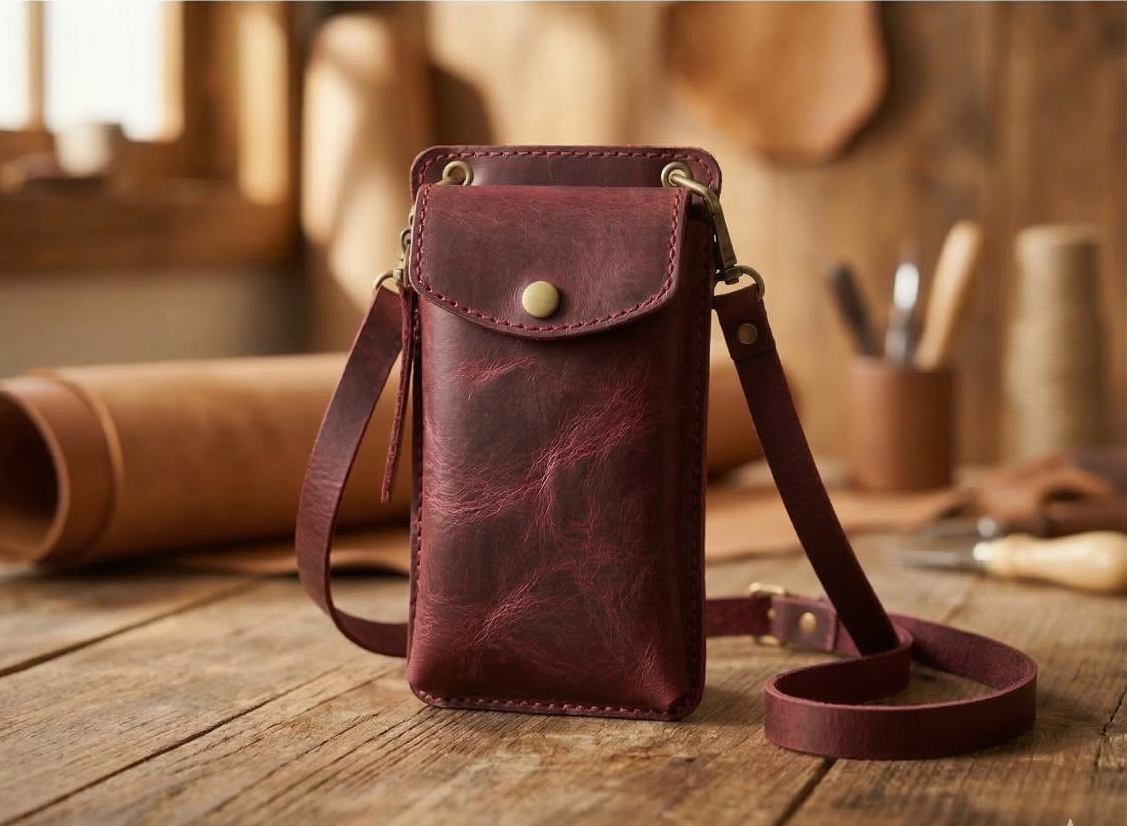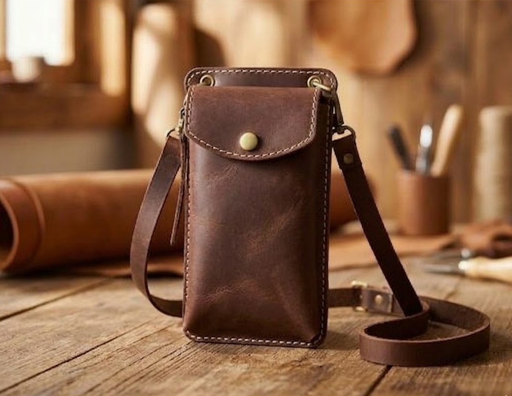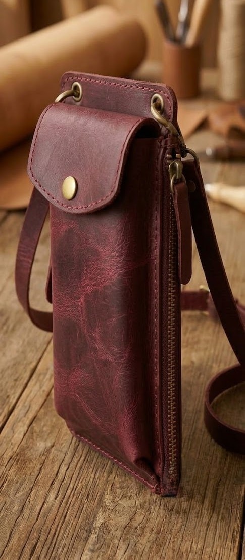 Discover the Perfect Blend of Elegance and Practicality with Our Premium Leather Crossbody Phone Bag.