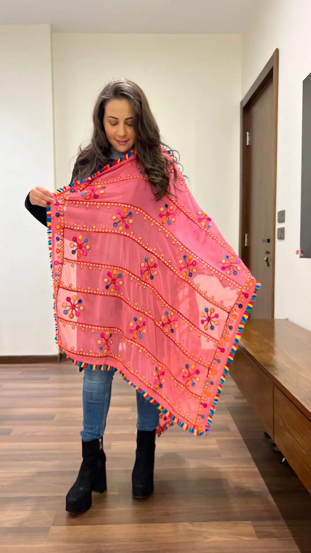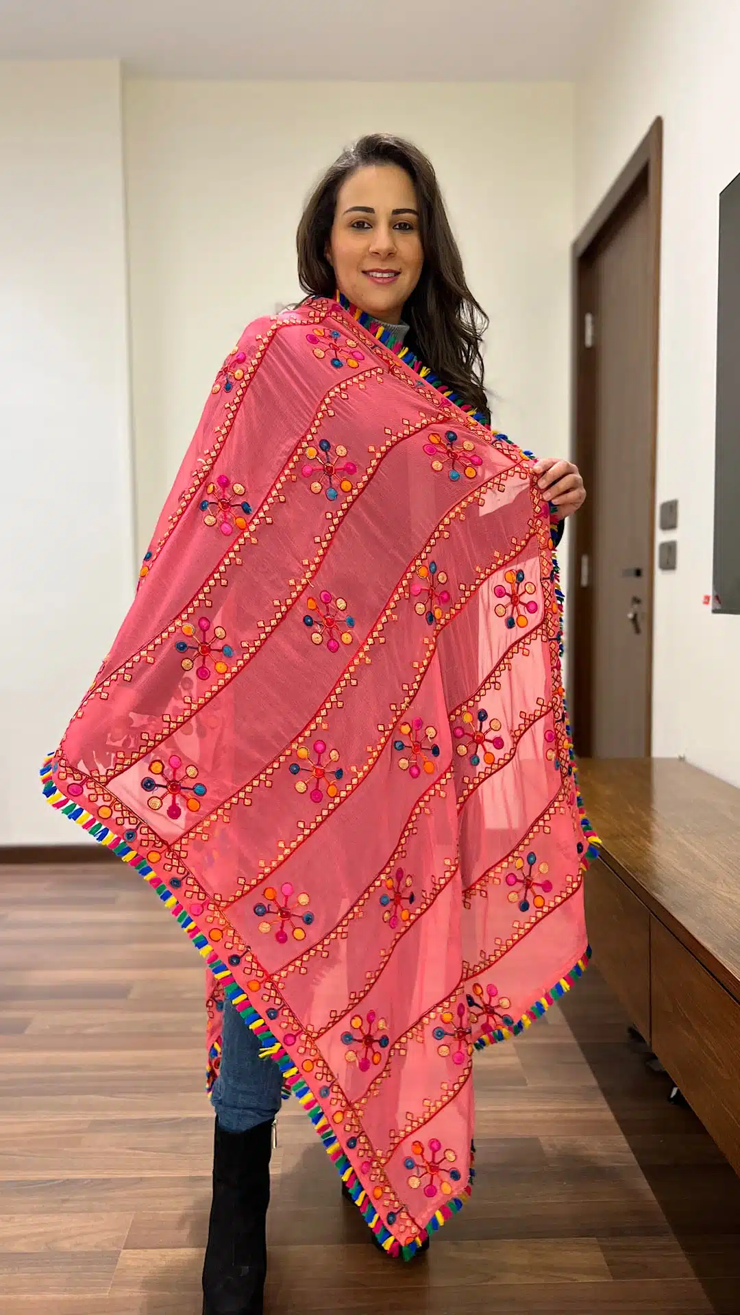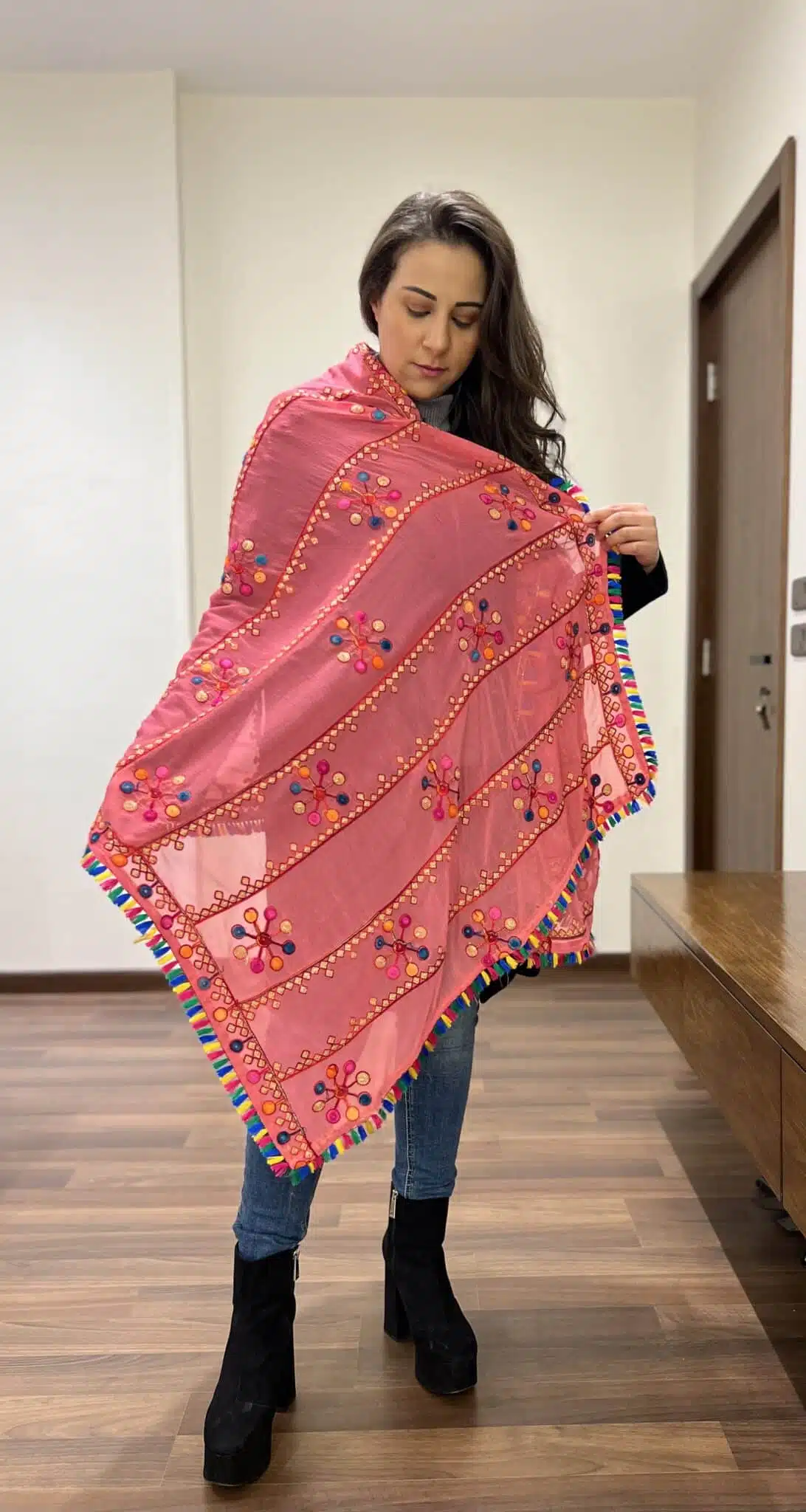 Pink Indian tassel shawl