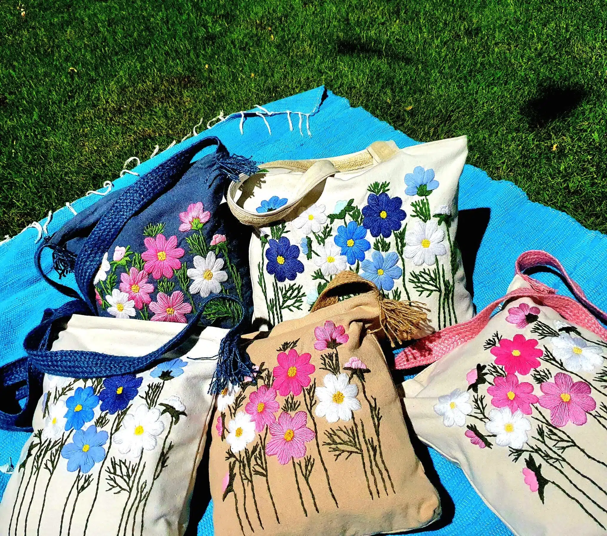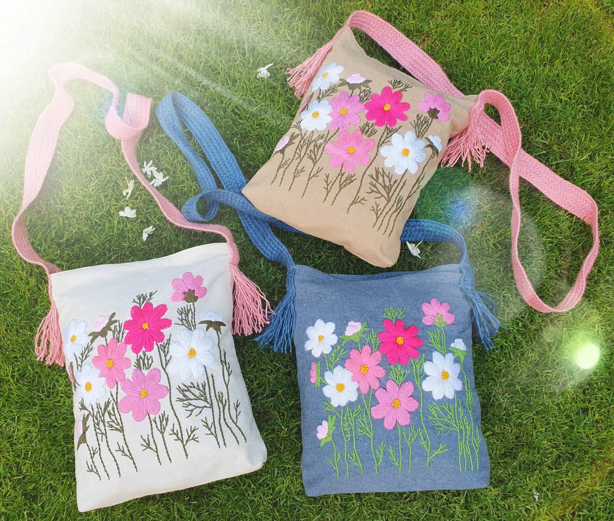 Handmade embroidery cross bags .heavy duty material. Jeans,Off-white, beij.