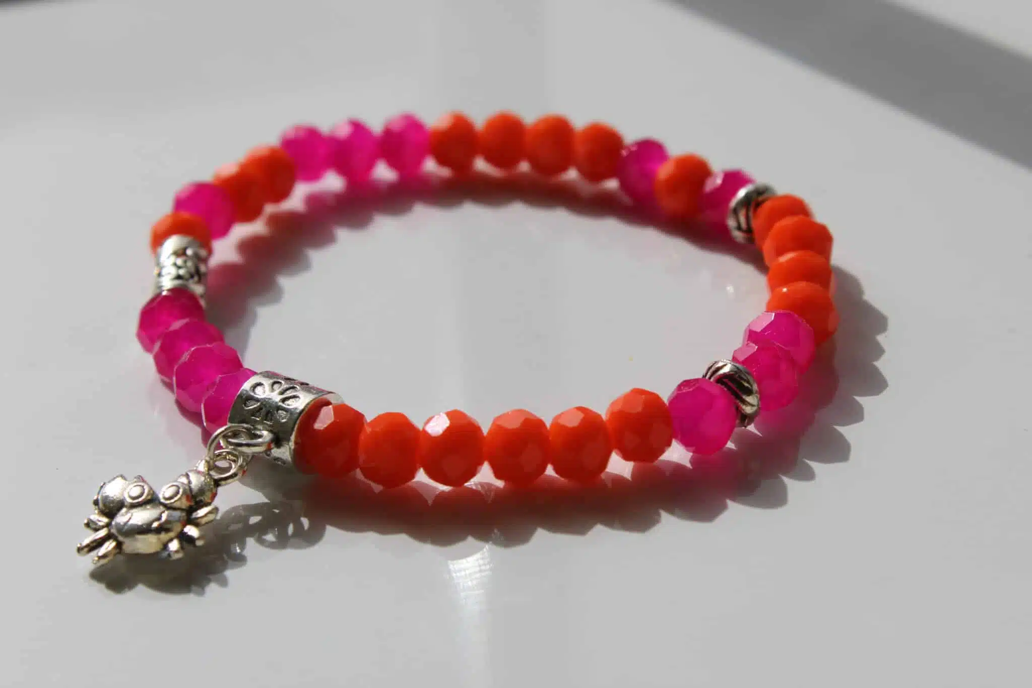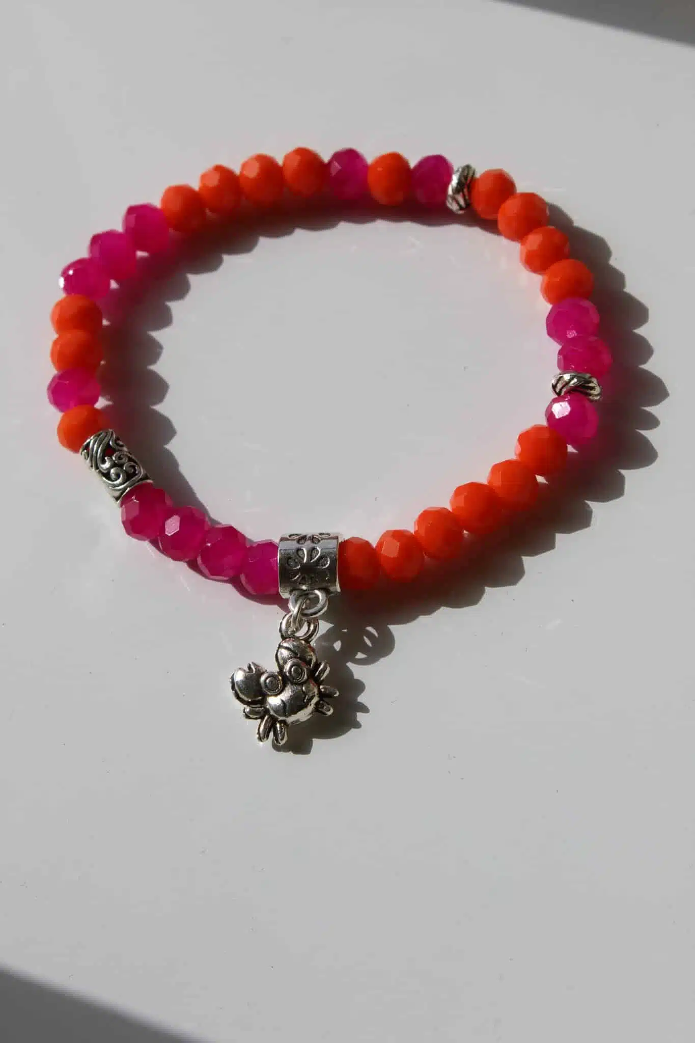 Pink & Orange crystal bracelet with silver charm.
