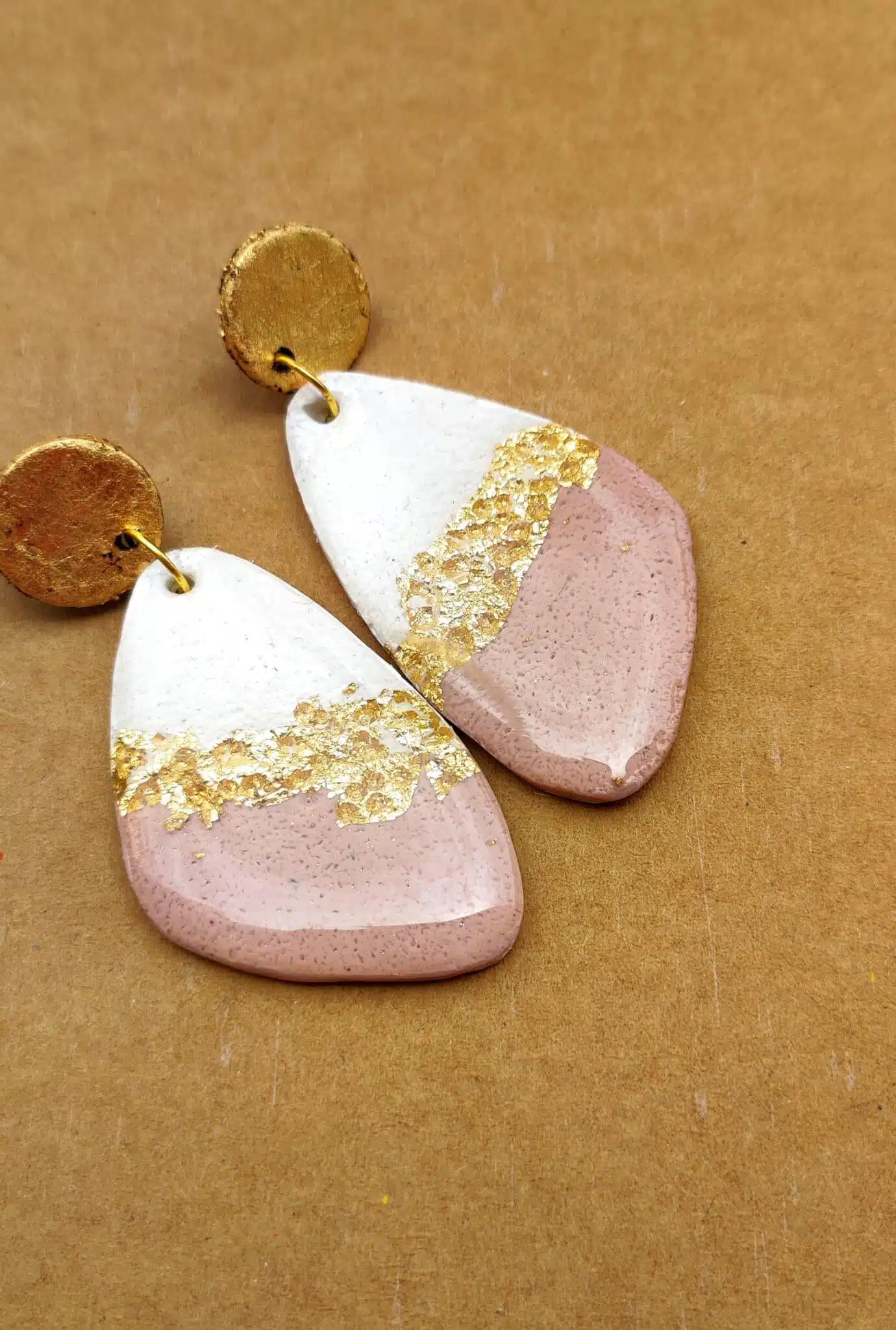 - أقراط ملونة كبيرة فريدة تمامًا مع أوراق ذهبية وشماعات ذهبية اللون ، أقراط مصنوعة يدويًا من مادة البوليمر كلاي مع الراتنج