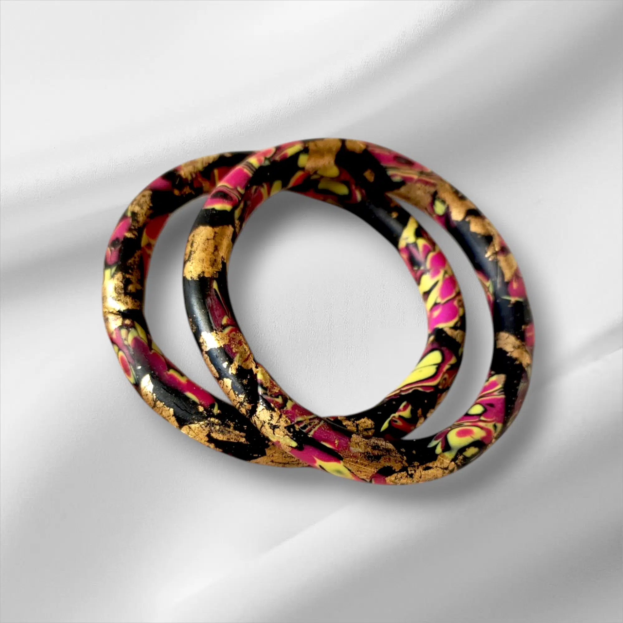 > Durable and Stylish Polymer Clay Bangles: Our bangles, crafted from high-quality polymer clay, offer both durability and elegance. Their modern designs and vibrant colors make them perfect for everyday wear.