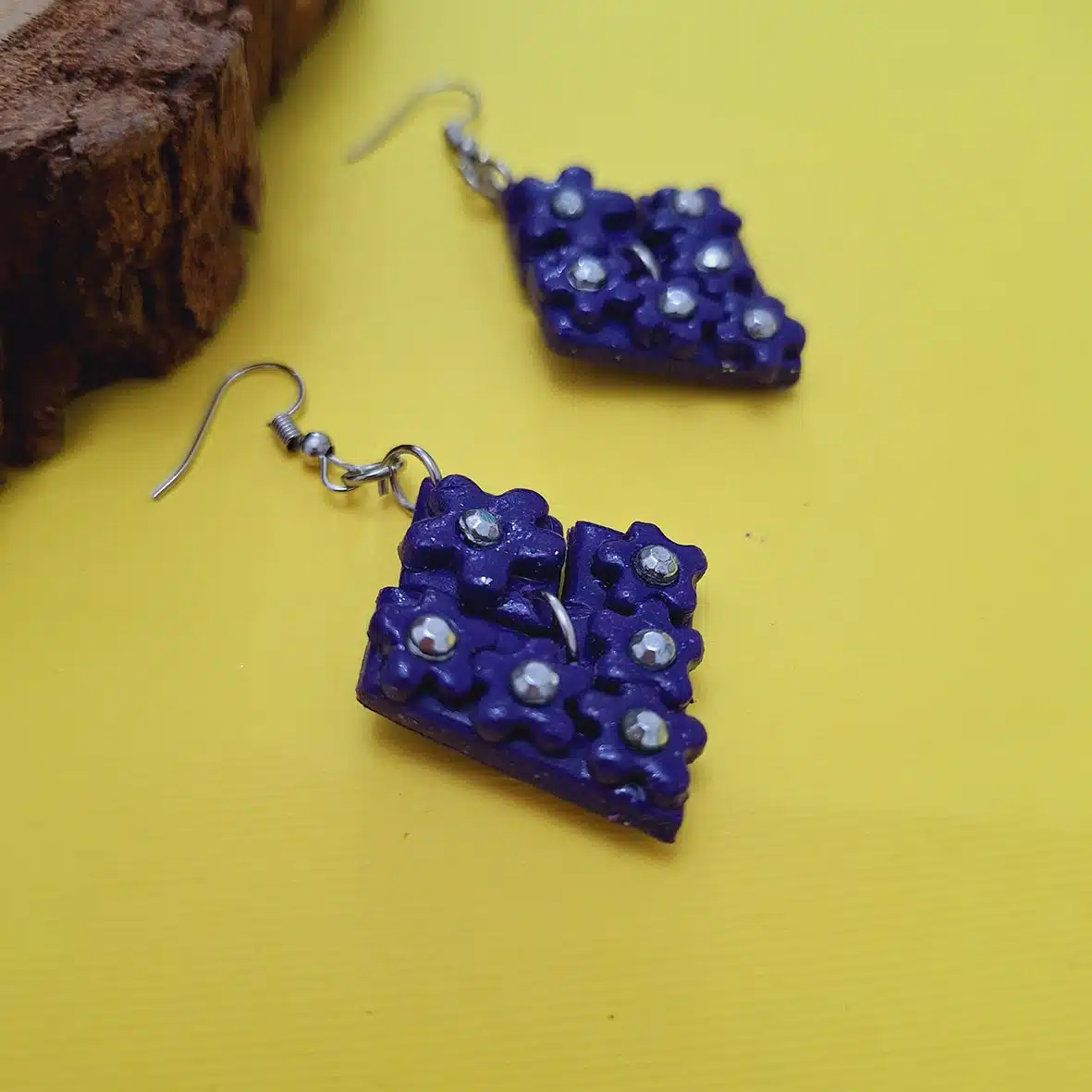 Polymer clay dangling earrings ‘Purple Cosomos’