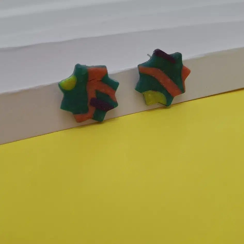 polymer clay studs earrings colorful oriental star