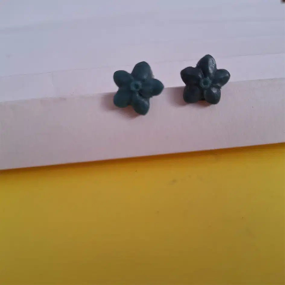 polymer clay studs earrings green flower