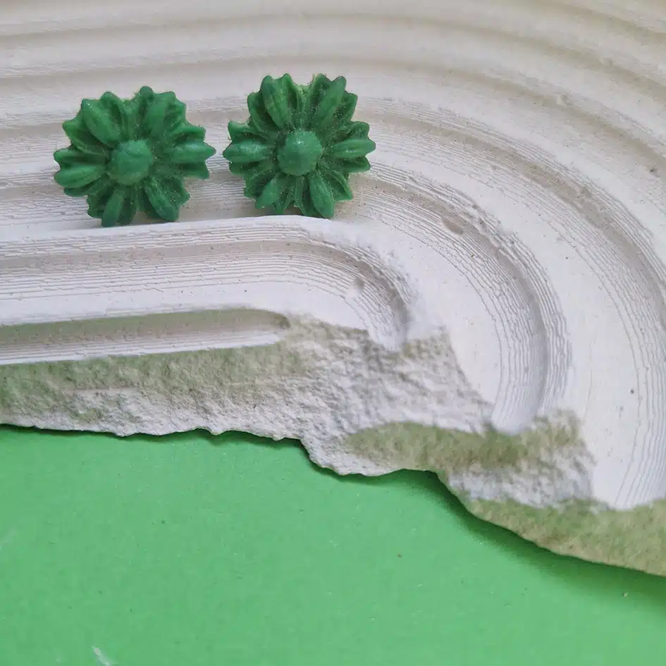 polymer clay studs earrings green flower