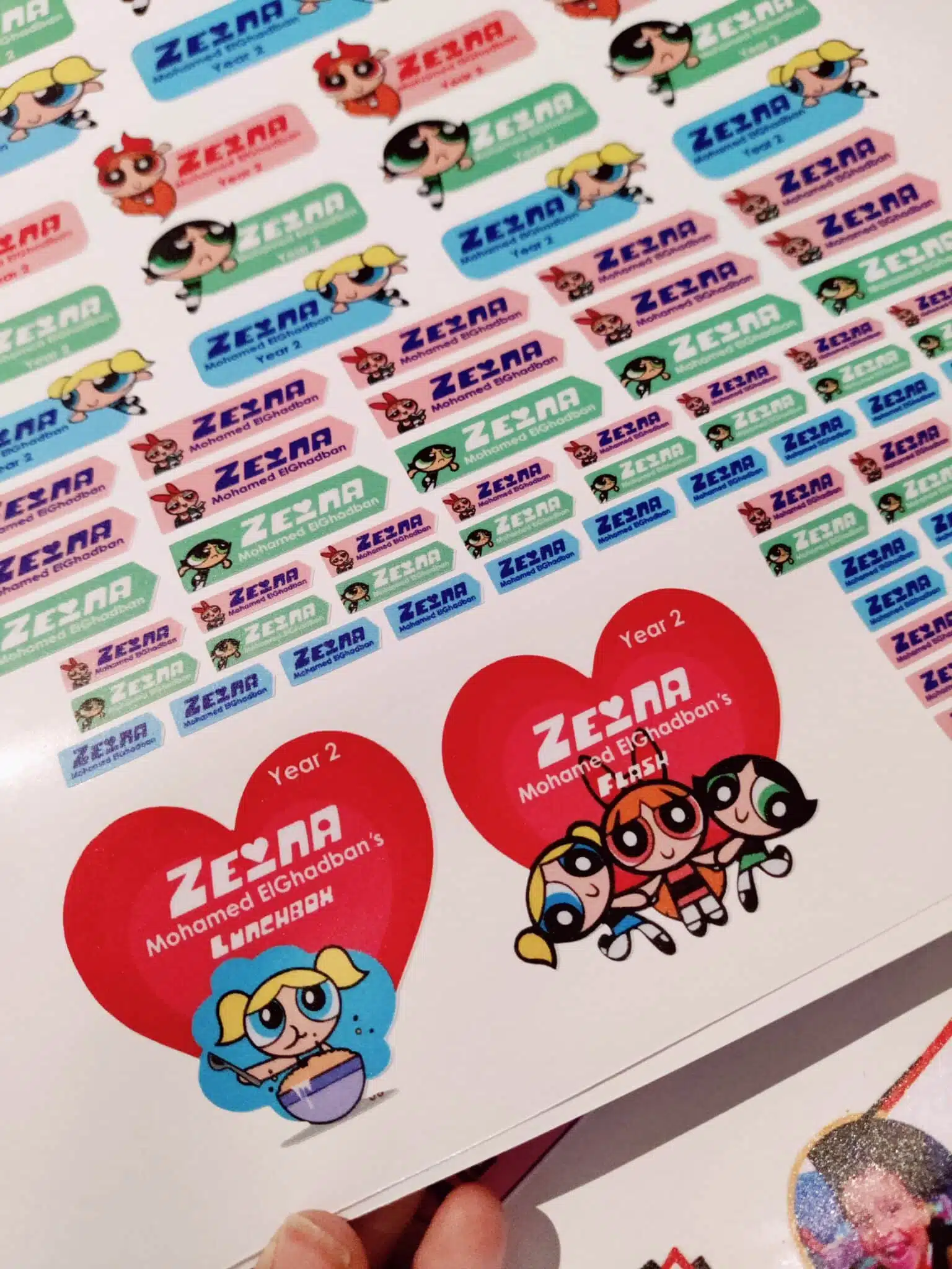 4 labels for bottle and lunchbox