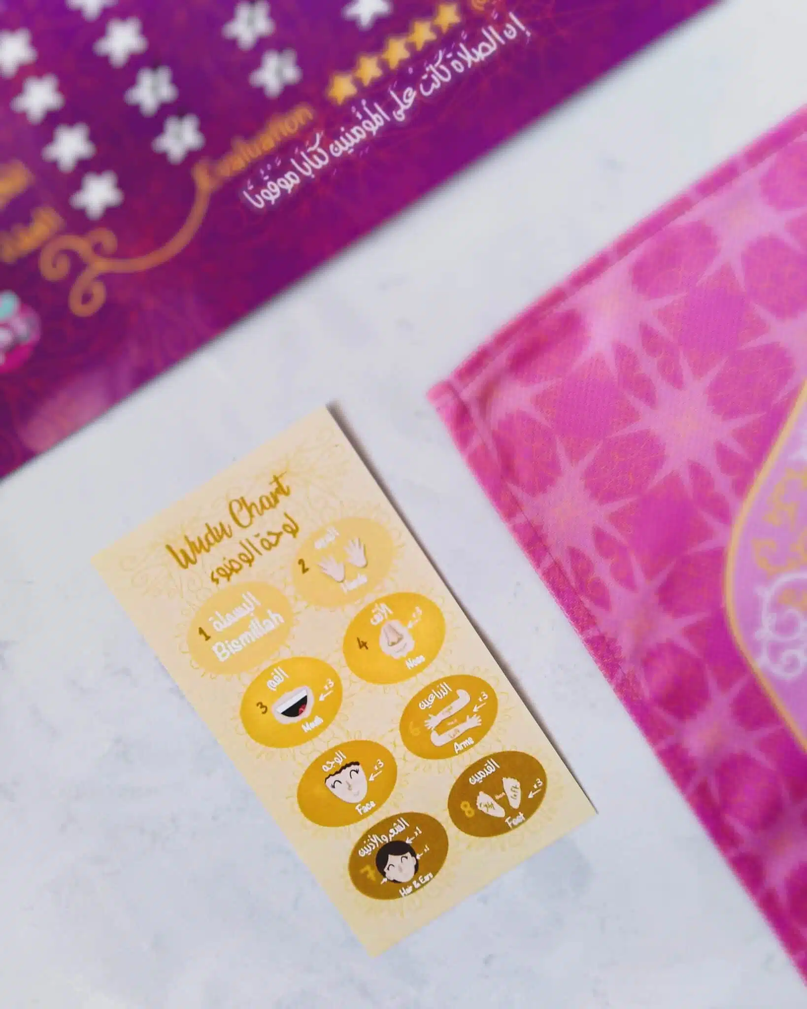 – A small Wudu chart with a double face so you can stick it in the bathroom