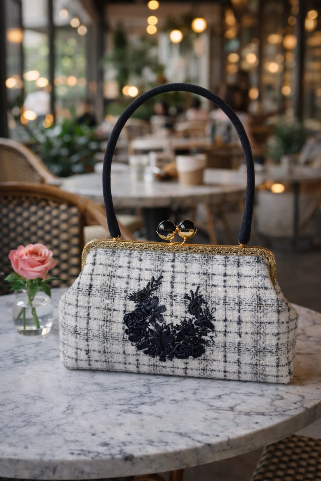 Crafted with care and refined taste, this premium wool bag is a timeless piece that blends elegance with artisanal craftsmanship. Made from high-quality wool, it features delicate embroidery using satin ribbons and fine thread, adding a soft, luxurious touch to its design.