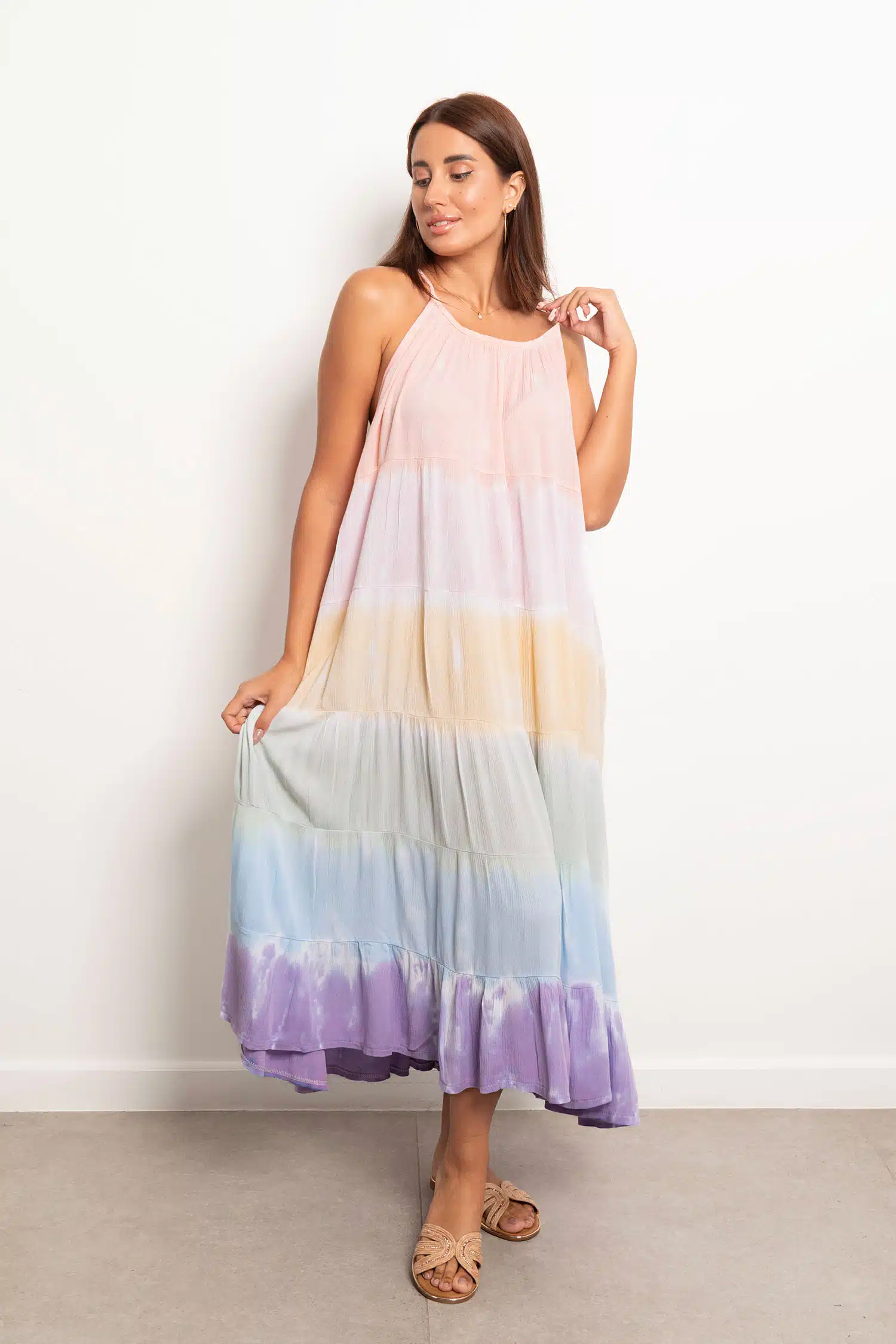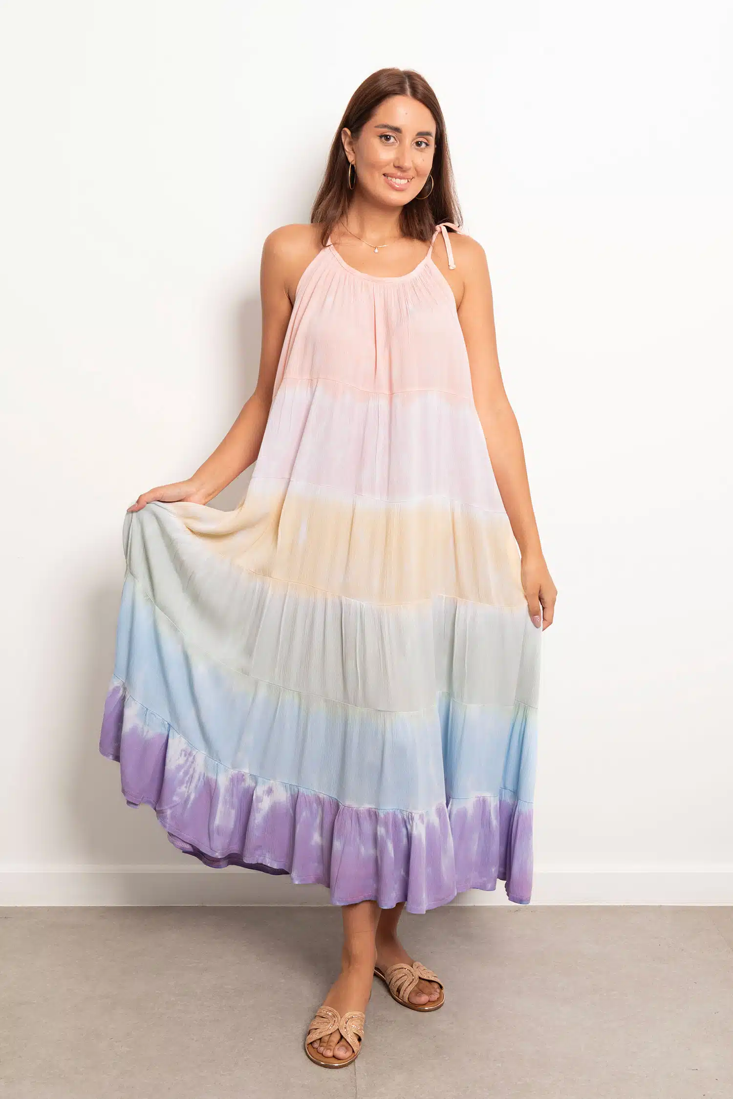 Hand tie dyed tier dress with adjustable straps