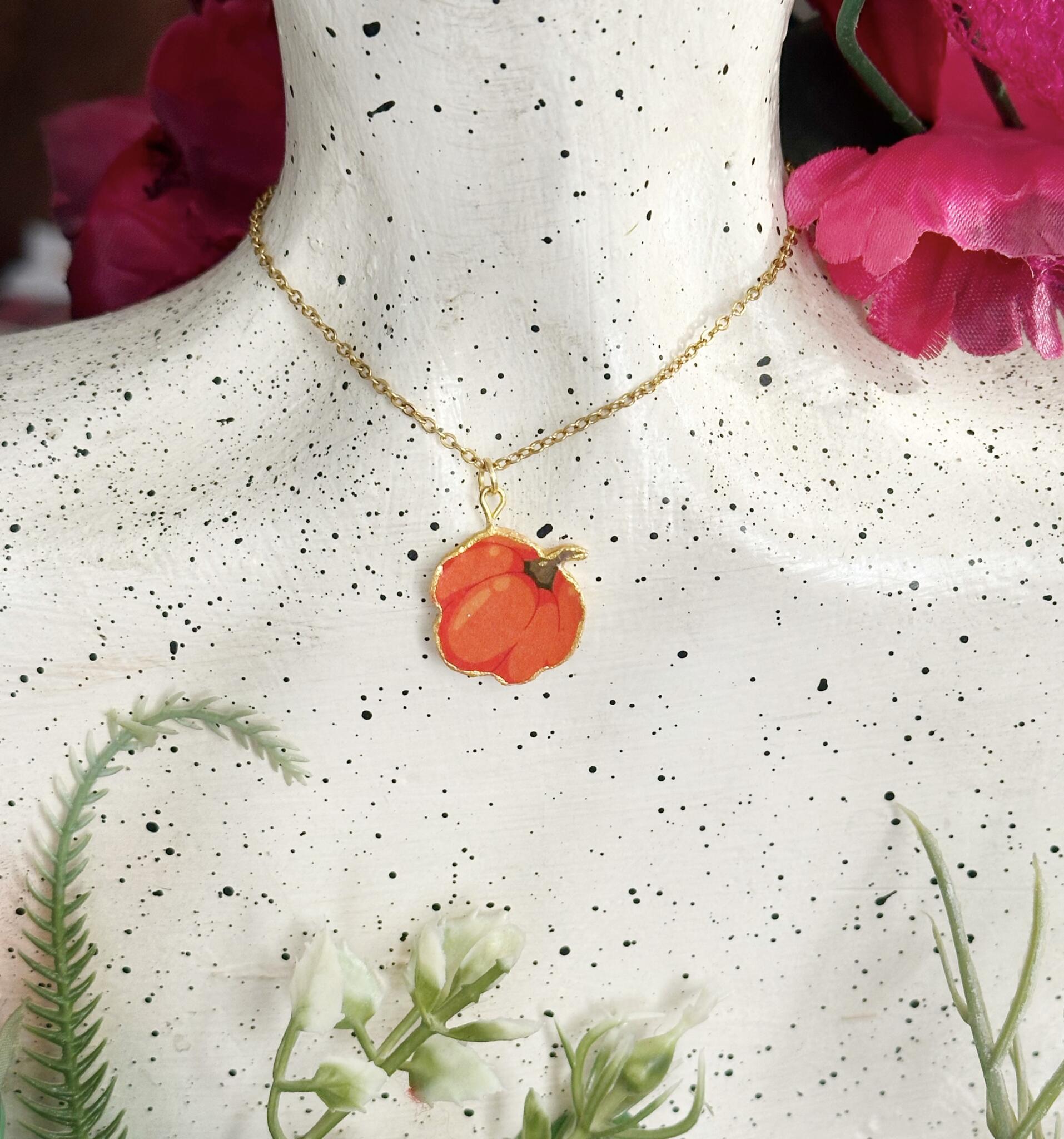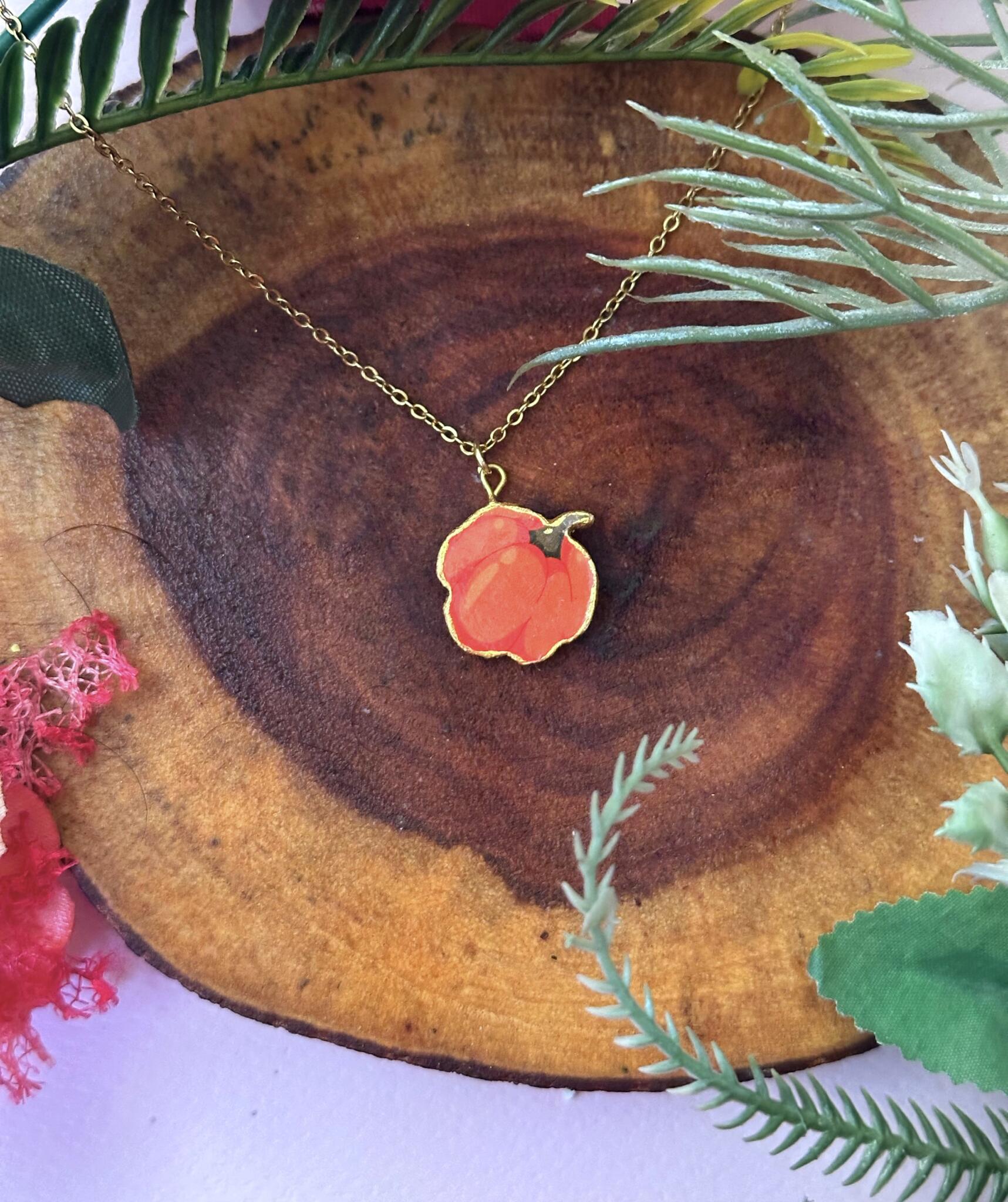 A handmade pumpkin pendant comes with a stainless-steel chain, crafted with care to bring a warm, cozy touch to your fall outfits.