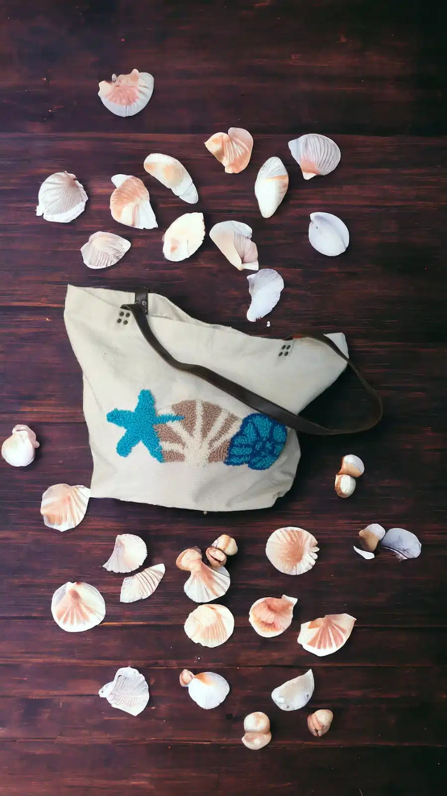 Punch needle Tote Bag with leather handle 45×35 cm Pre-order 7 days