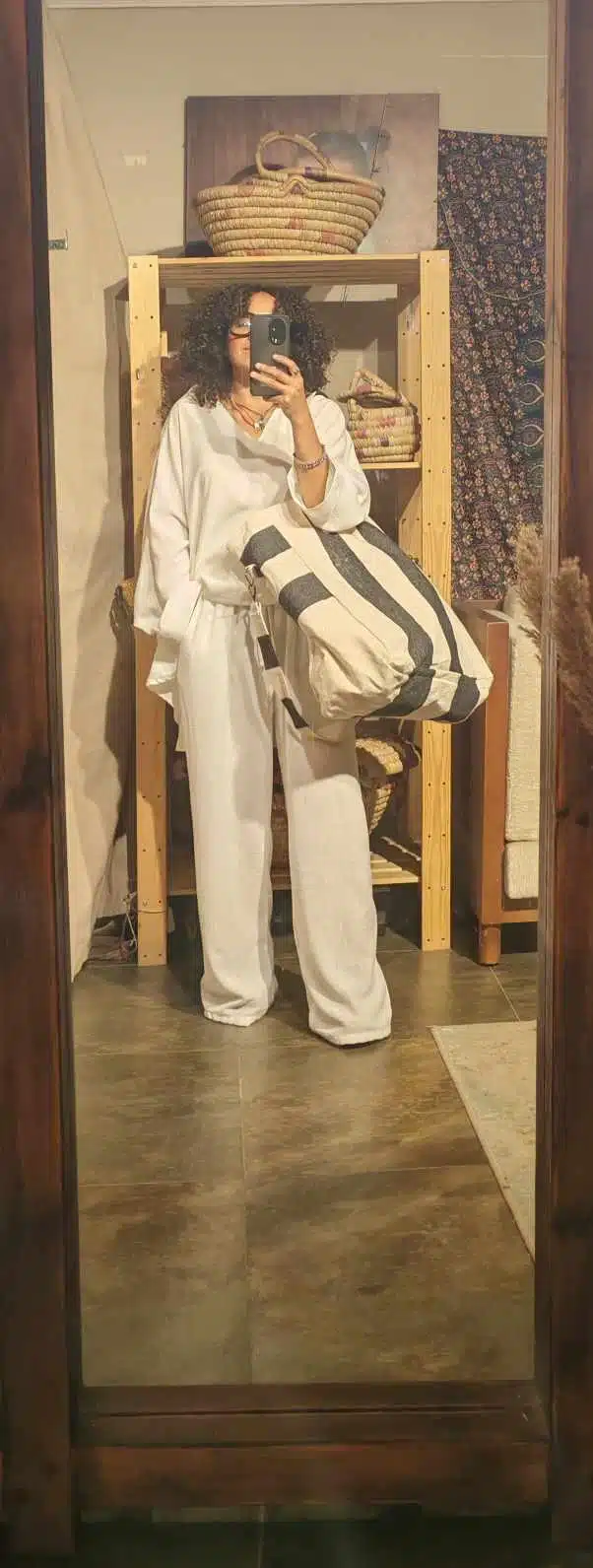 🌿 الخامة: كتان، يسمح بتهوية مثالية للبشرة، ويزداد نعومة مع كل غسلة.