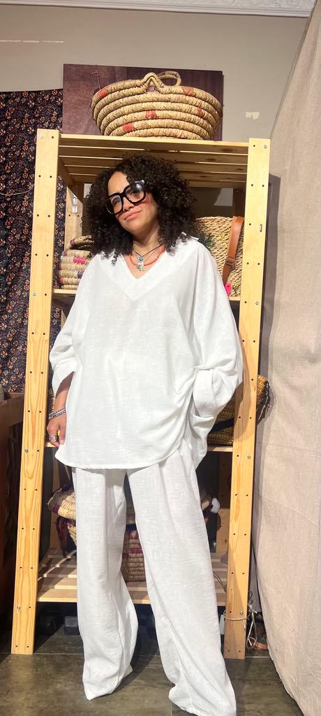 🌿 الخامة: كتان، يسمح بتهوية مثالية للبشرة، ويزداد نعومة مع كل غسلة.