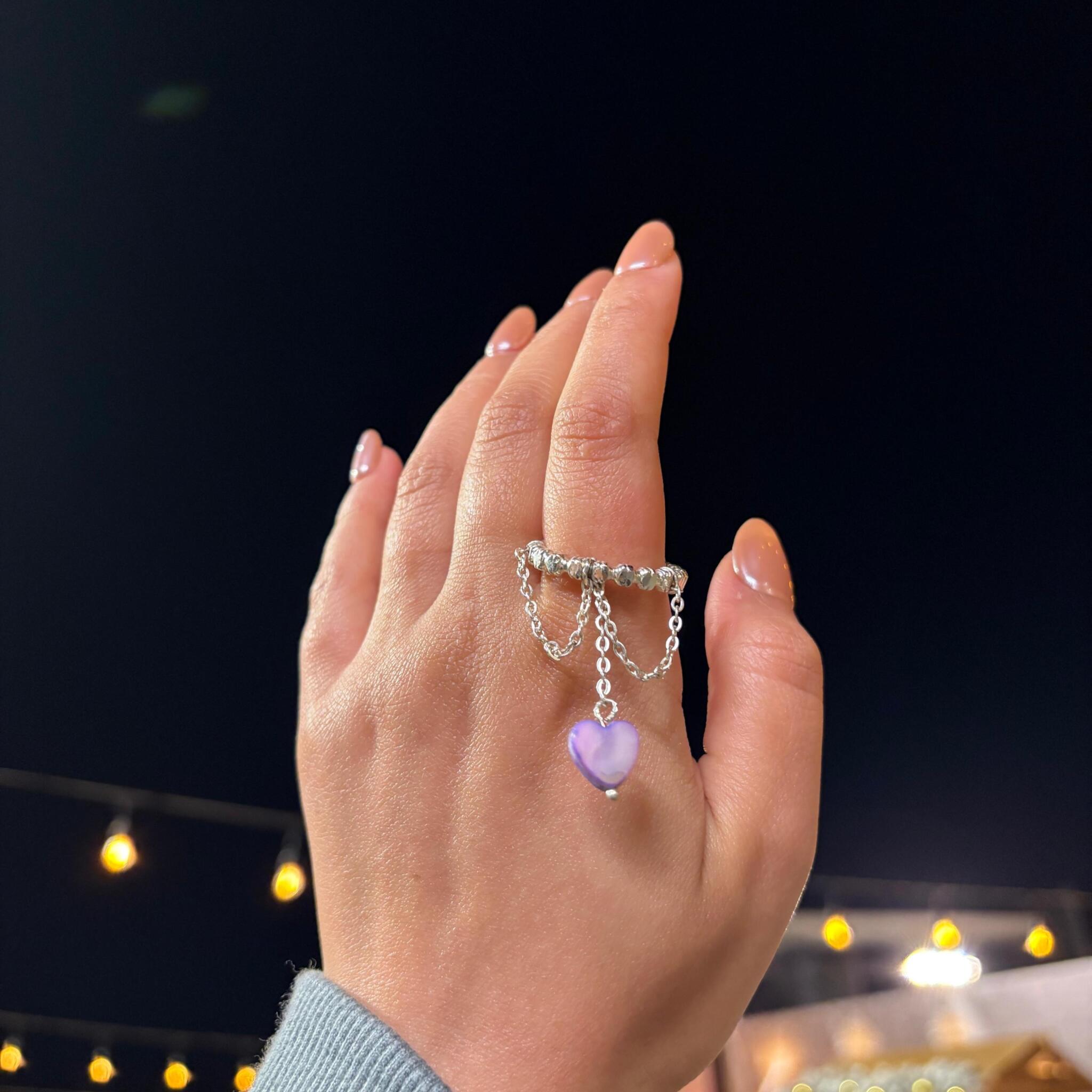 Hand made silver plated copper ring with seashell heart shape stone