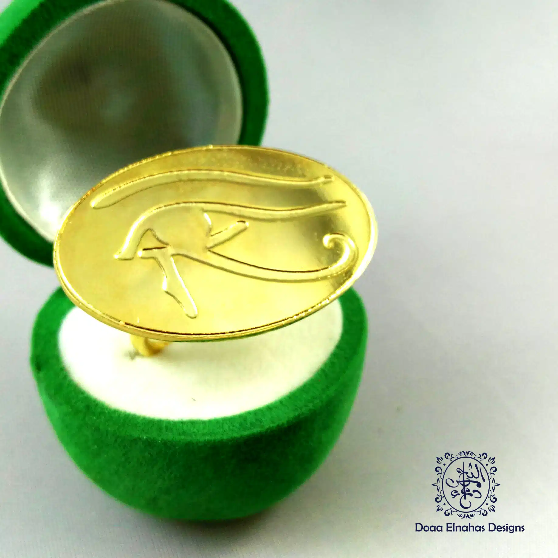 Gold-plated brass ring. Eye of Horus