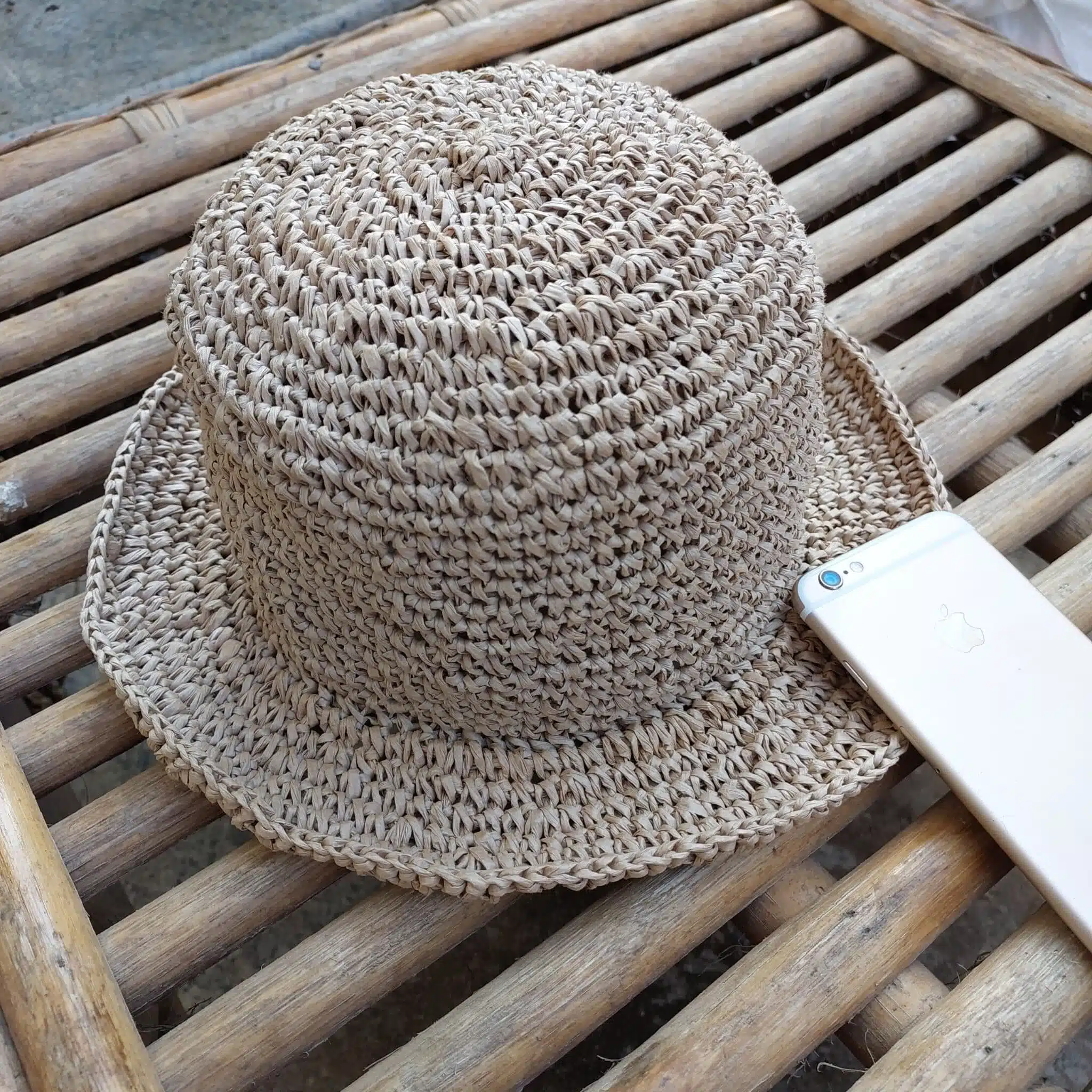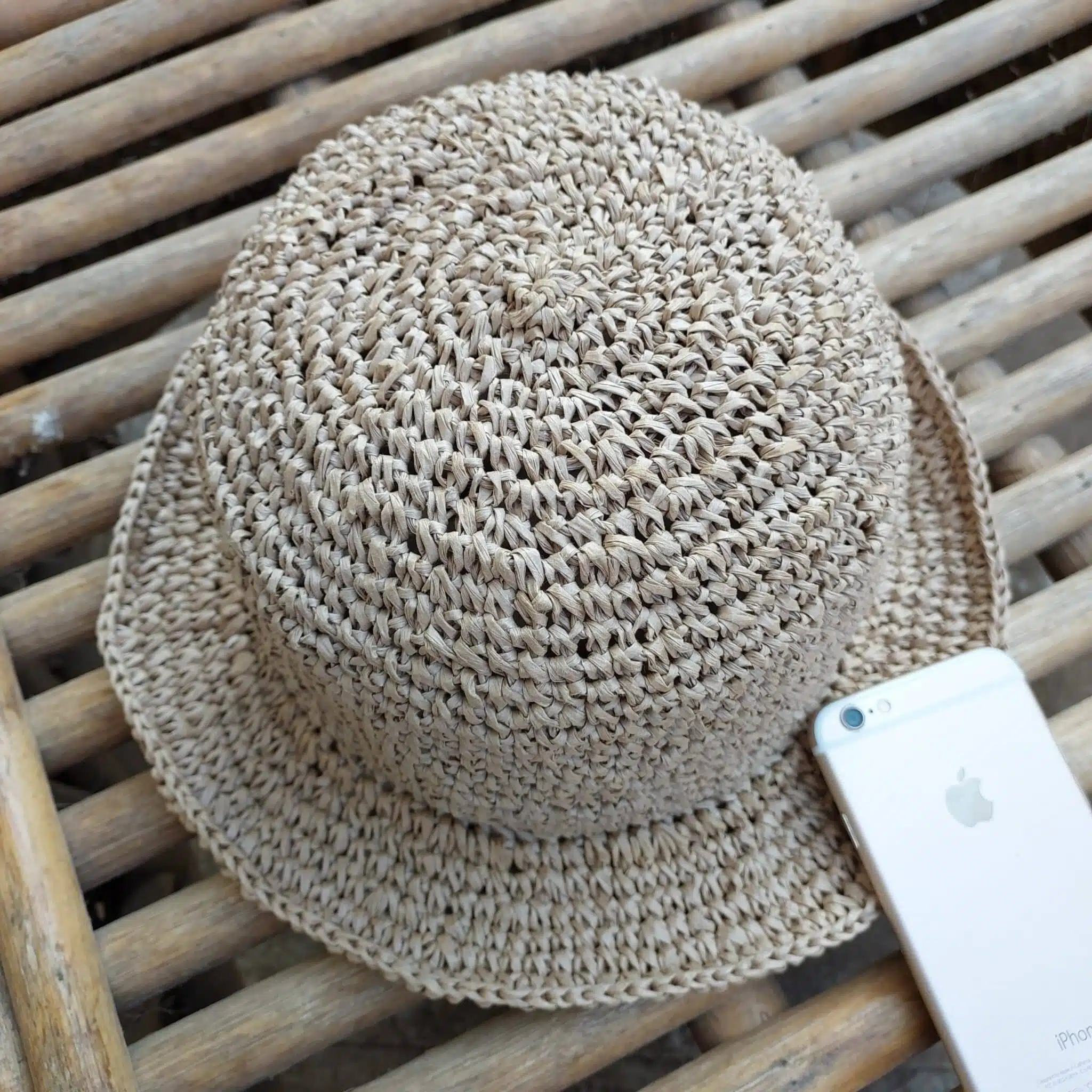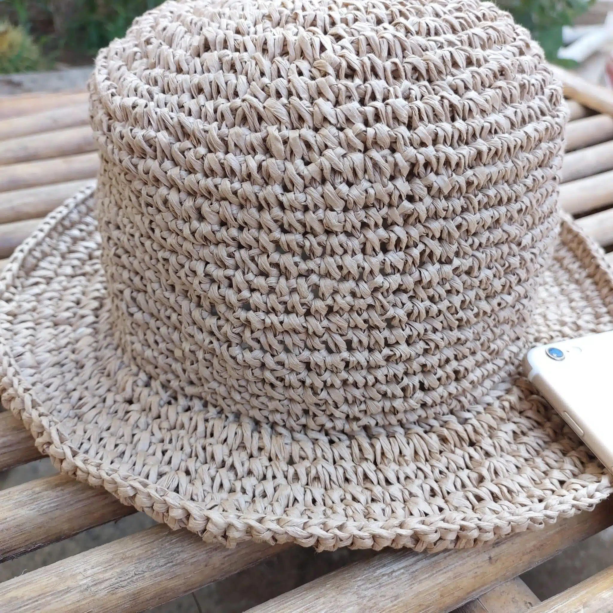 برنيطة كروشيه بخيط الرافيا التاج ٢٠ سم الحافة ٦ سم