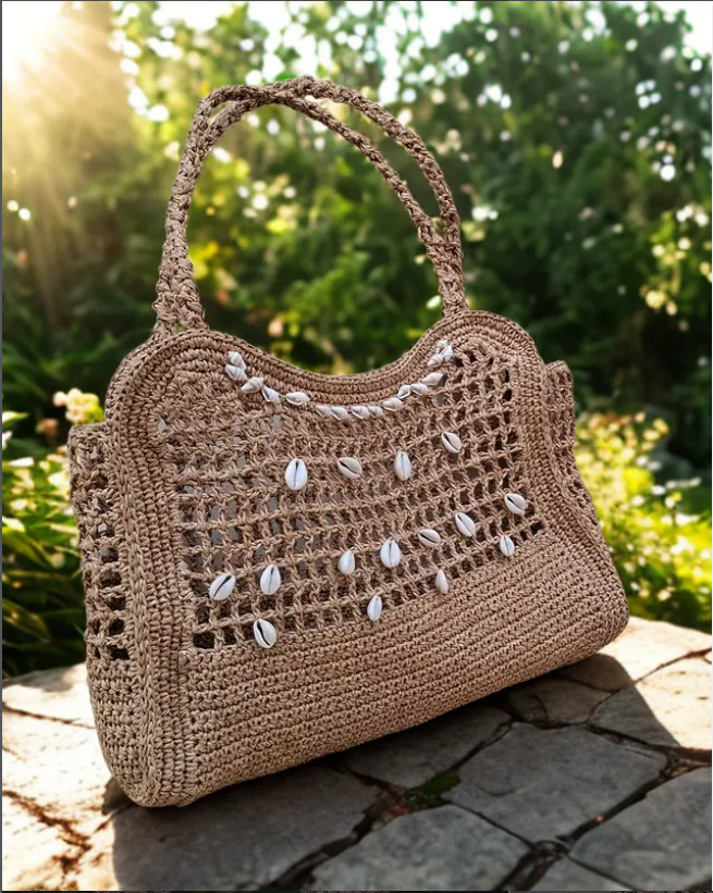 Where summer blooms and seaside dreams meet — our new Handmade Rafia beach bag is a picnic-ready piece of art, adorned with seashell charms.