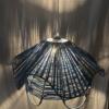 نجفة مكونة من طبقتين فوق بعض، مصنوعة من ورق رفية وملون باللون الأزرق. الطبقة الأولى بتكون متداخلة بشكل جميل مع الطبقة الثانية