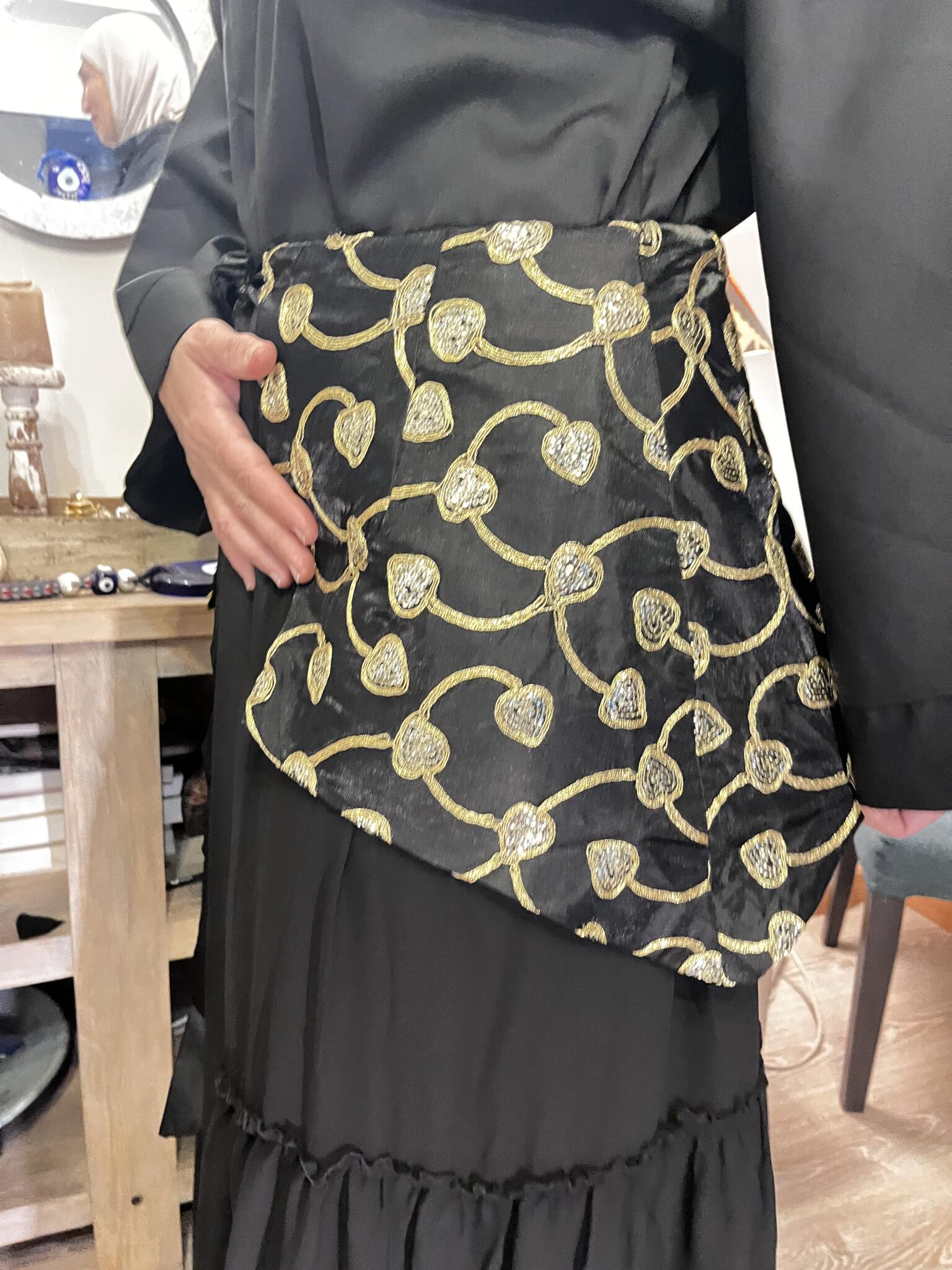 This piece is inspired by the classic Egyptian galabeya silhouette, elevated with a soft chiffon and sirma cover that adds an elegant, refined touch.