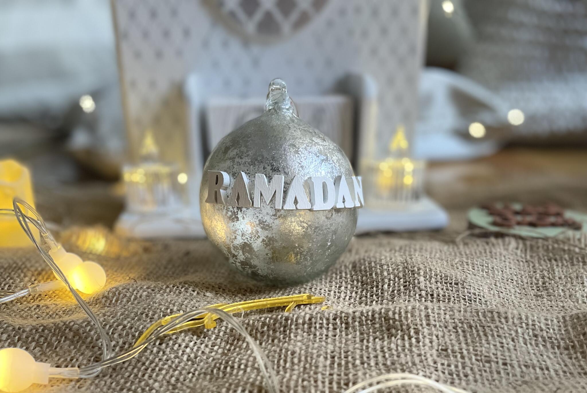 Celebrate every single day of Ramadan with this one-of-a-kind Ramadan calendar. The silver-leafed glass bauble reflects external surrounding lights and add glamor to the place.