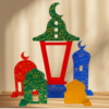 A beautiful decorative set for Ramadan with vibrant colors. Contains 5 pieces, chic and elegant, can decorate any corner in your room as well as your dining table. Made of wood, its light, easy to store and can be used over and over for years. Perfect gift too.