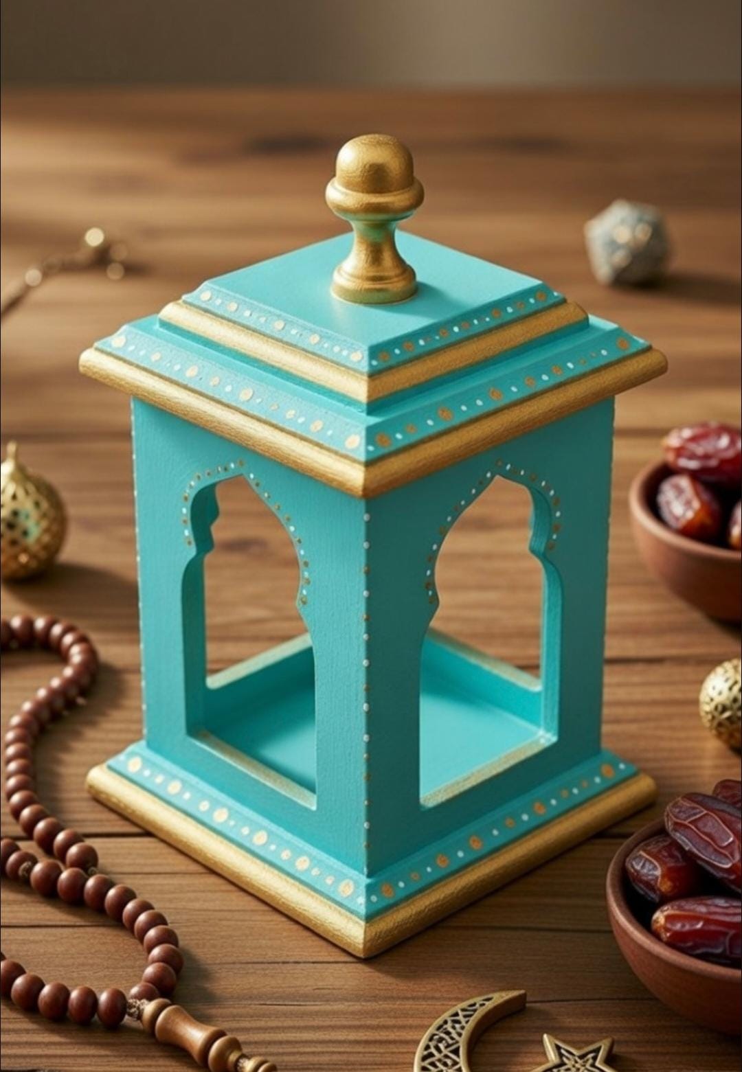 Ramadan Fanoos in turquoise and gold, with beautiful dotting details