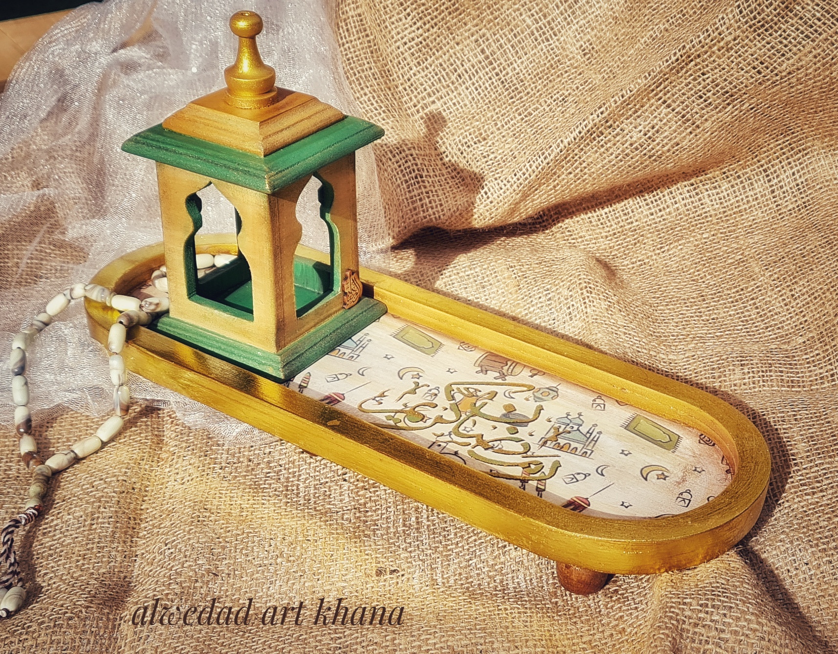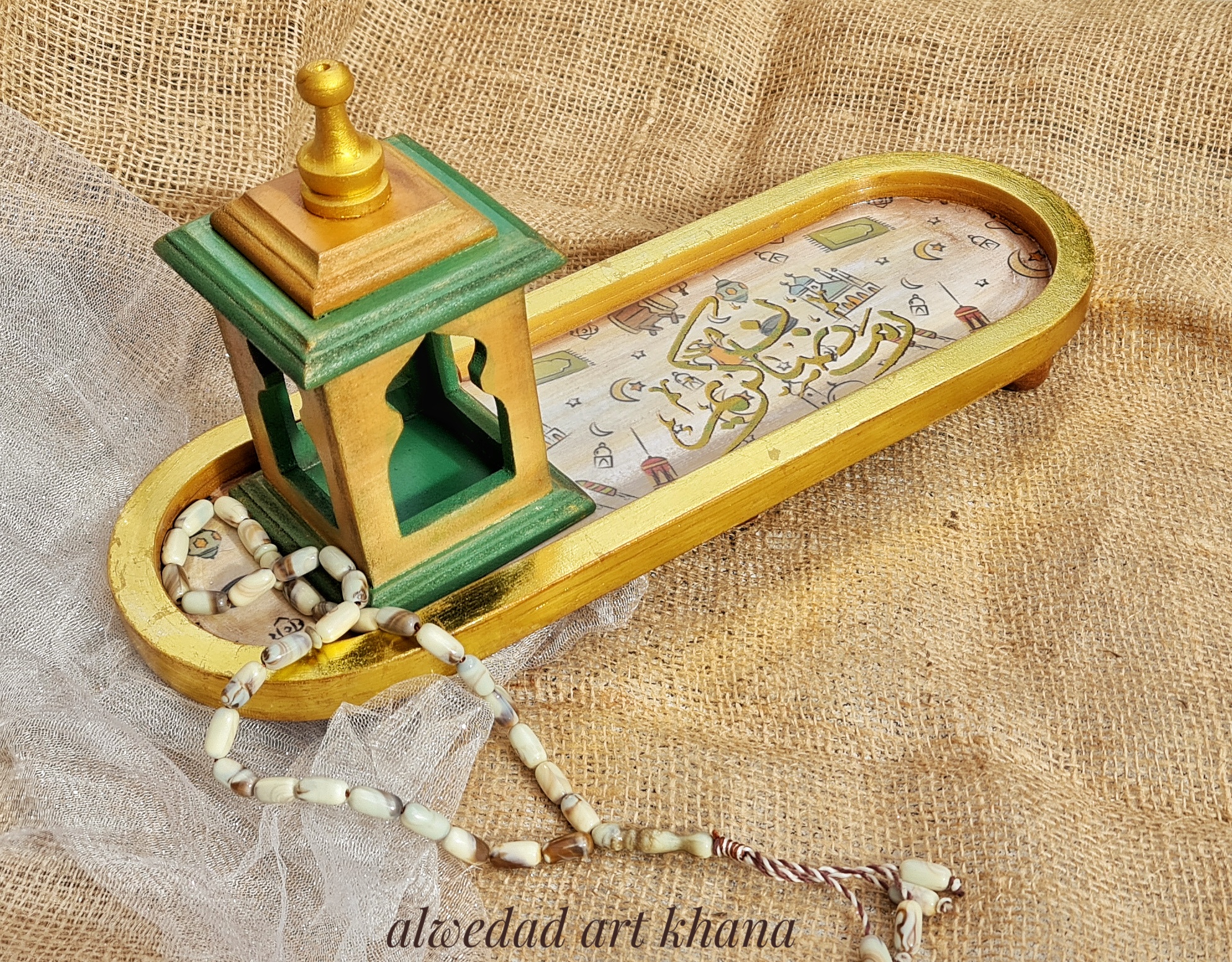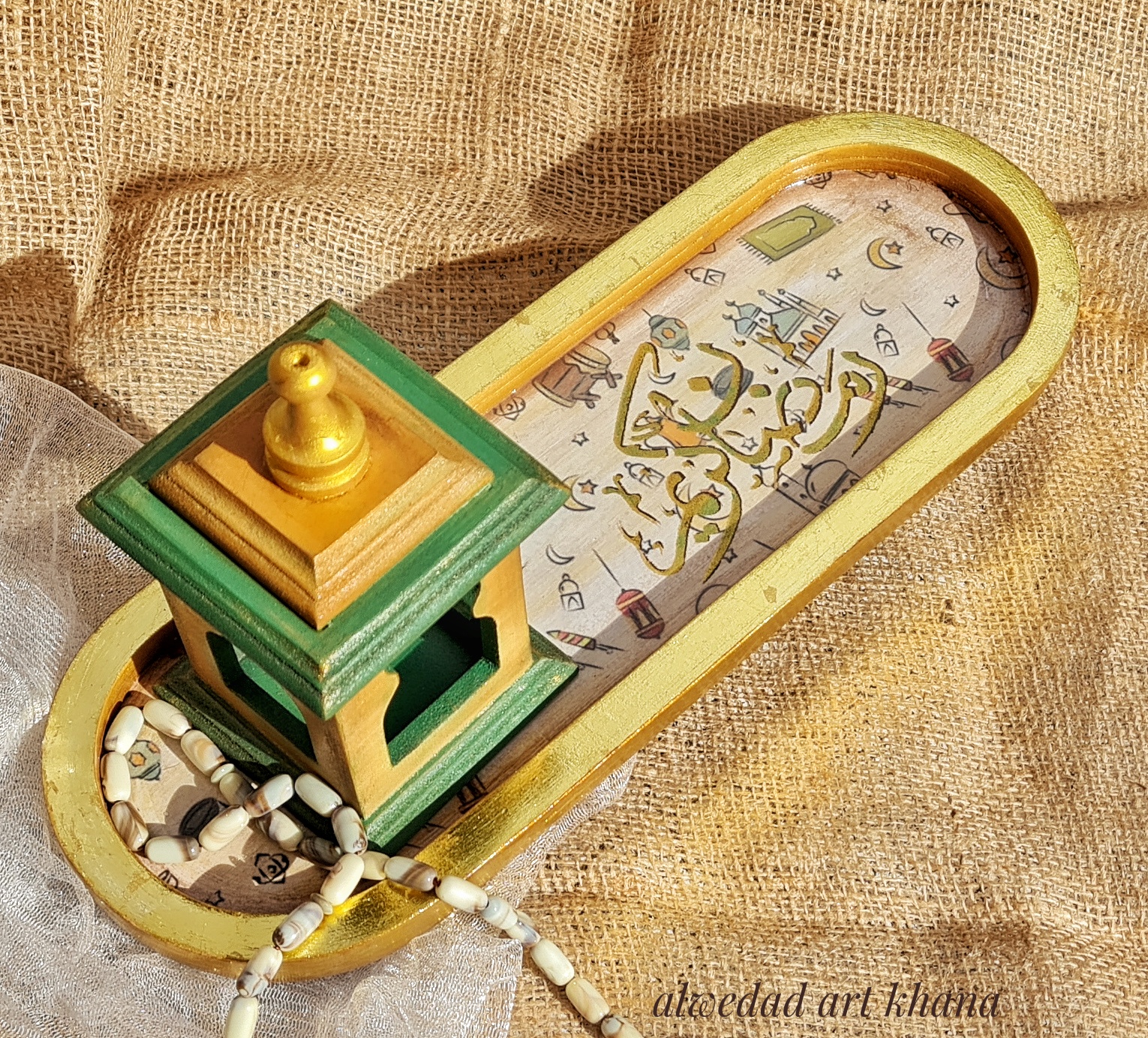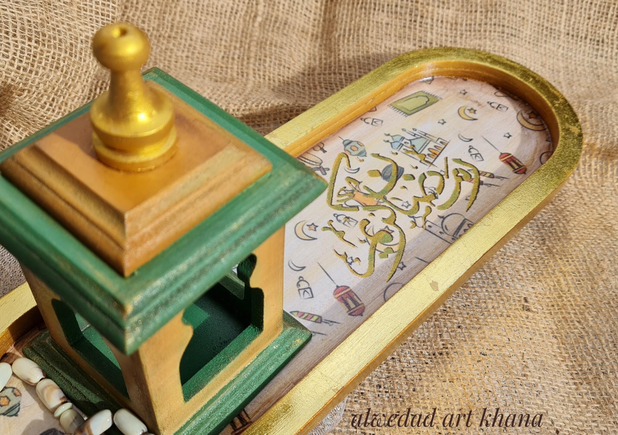 مجموعة رمضانية أنيقة مكونة من center piece مزينة بورق الذهب + فانوس صغير