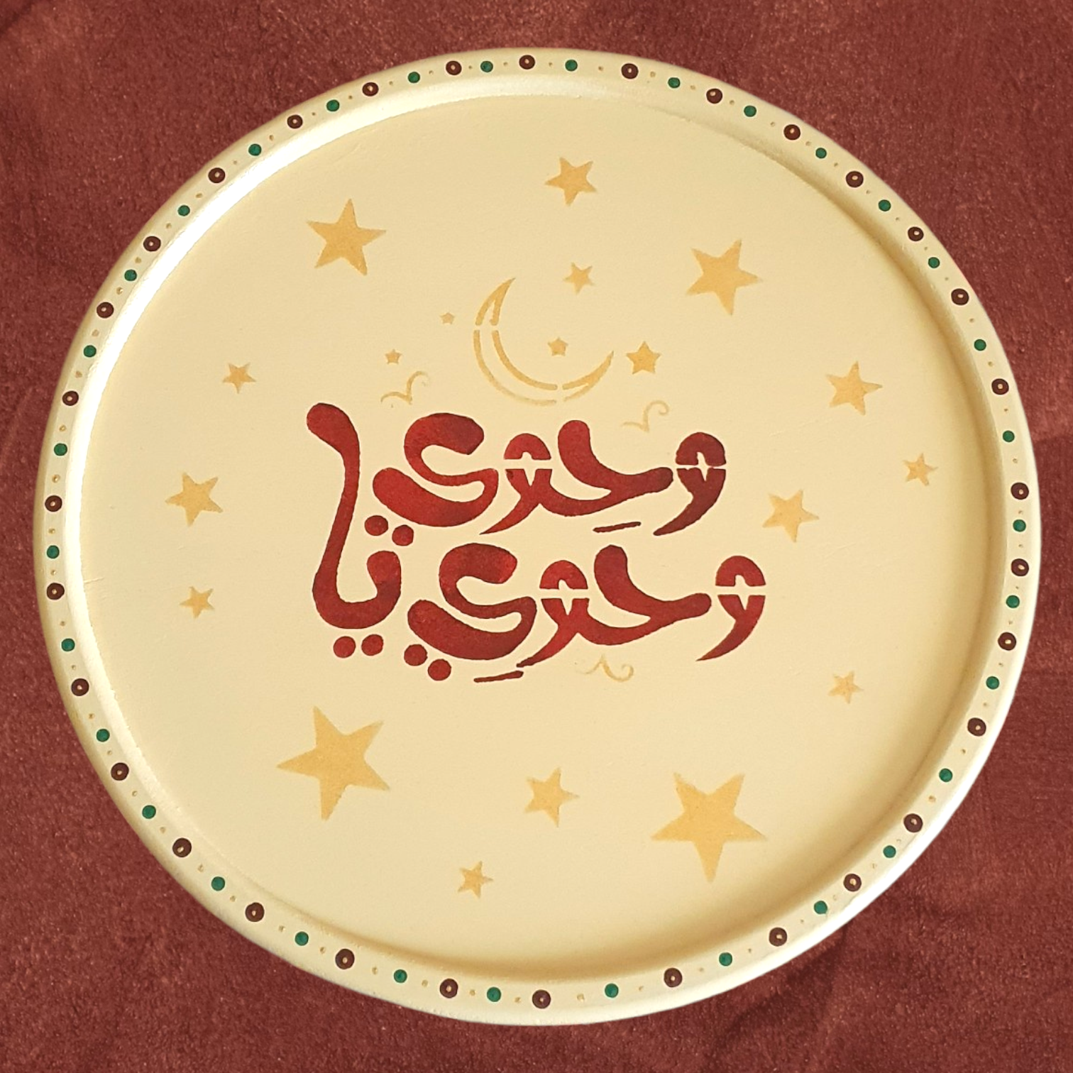 A beautiful set of wooden trays, Ramadan themed.