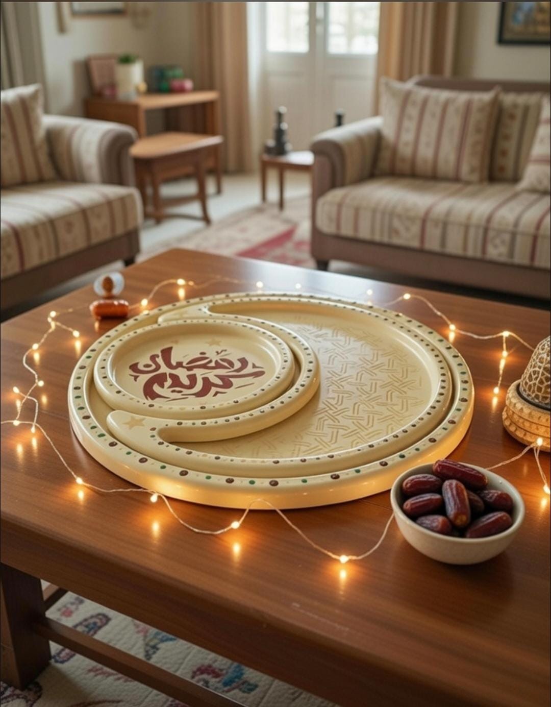 A beautiful set of wooden trays for Ramadan