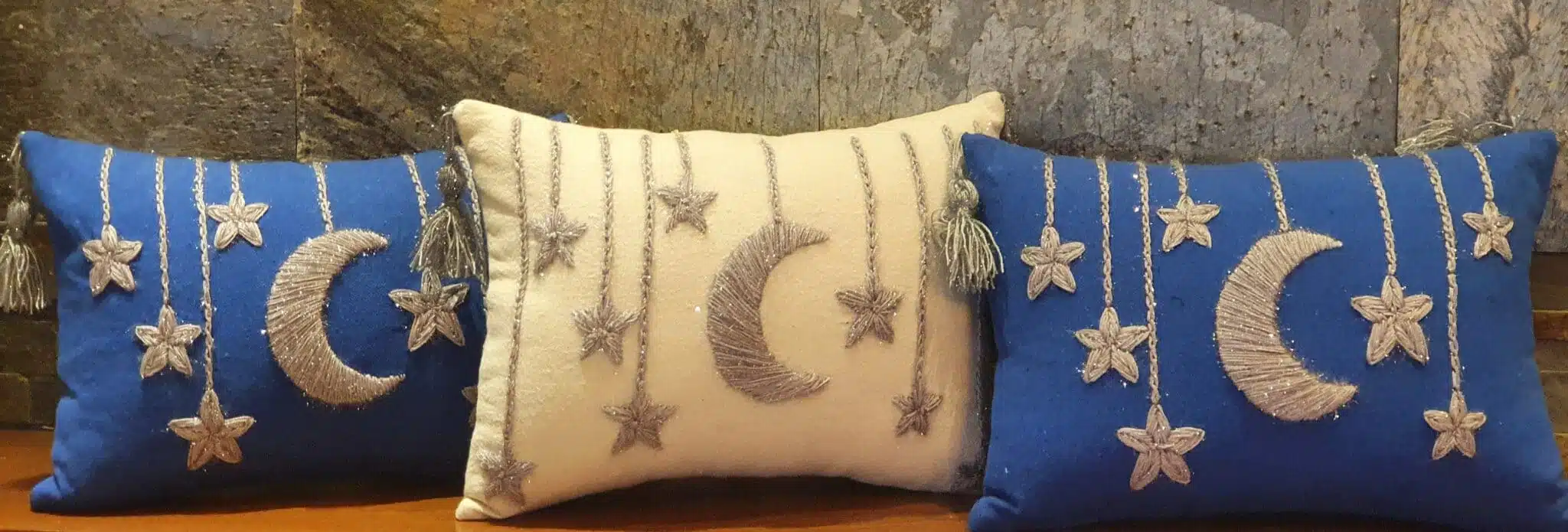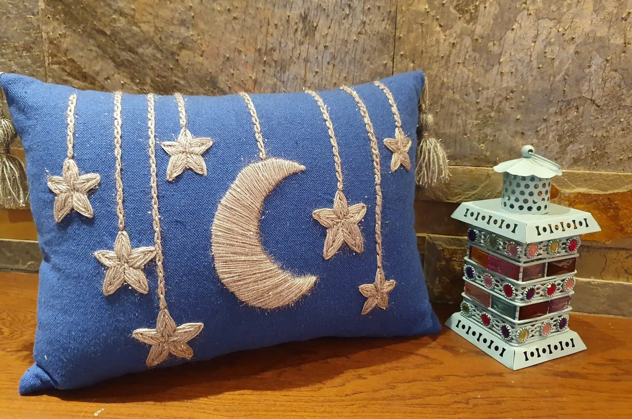 Cushin 40×30 cm royal blue with hand made embroidery in silver or golden (as required)