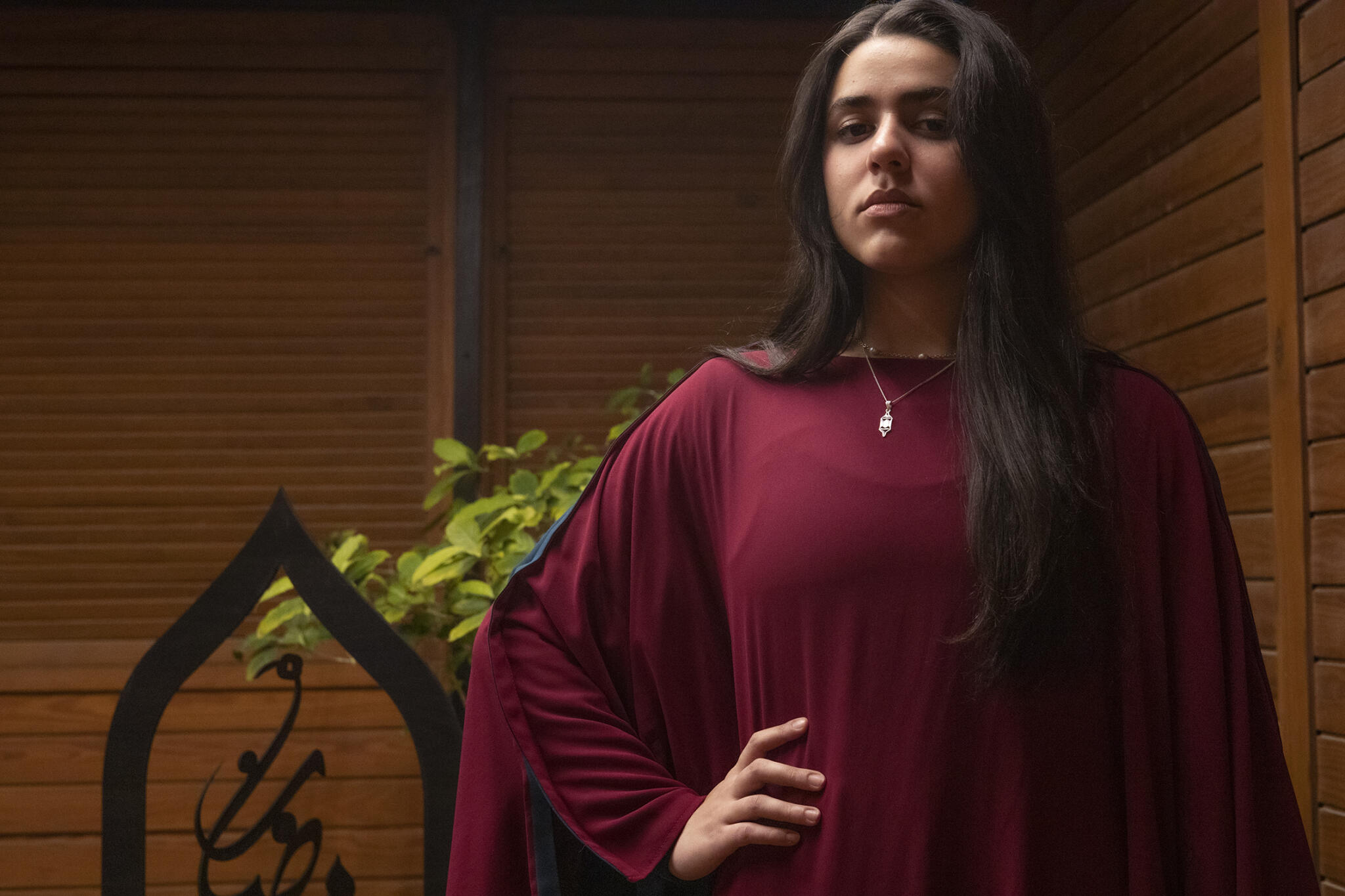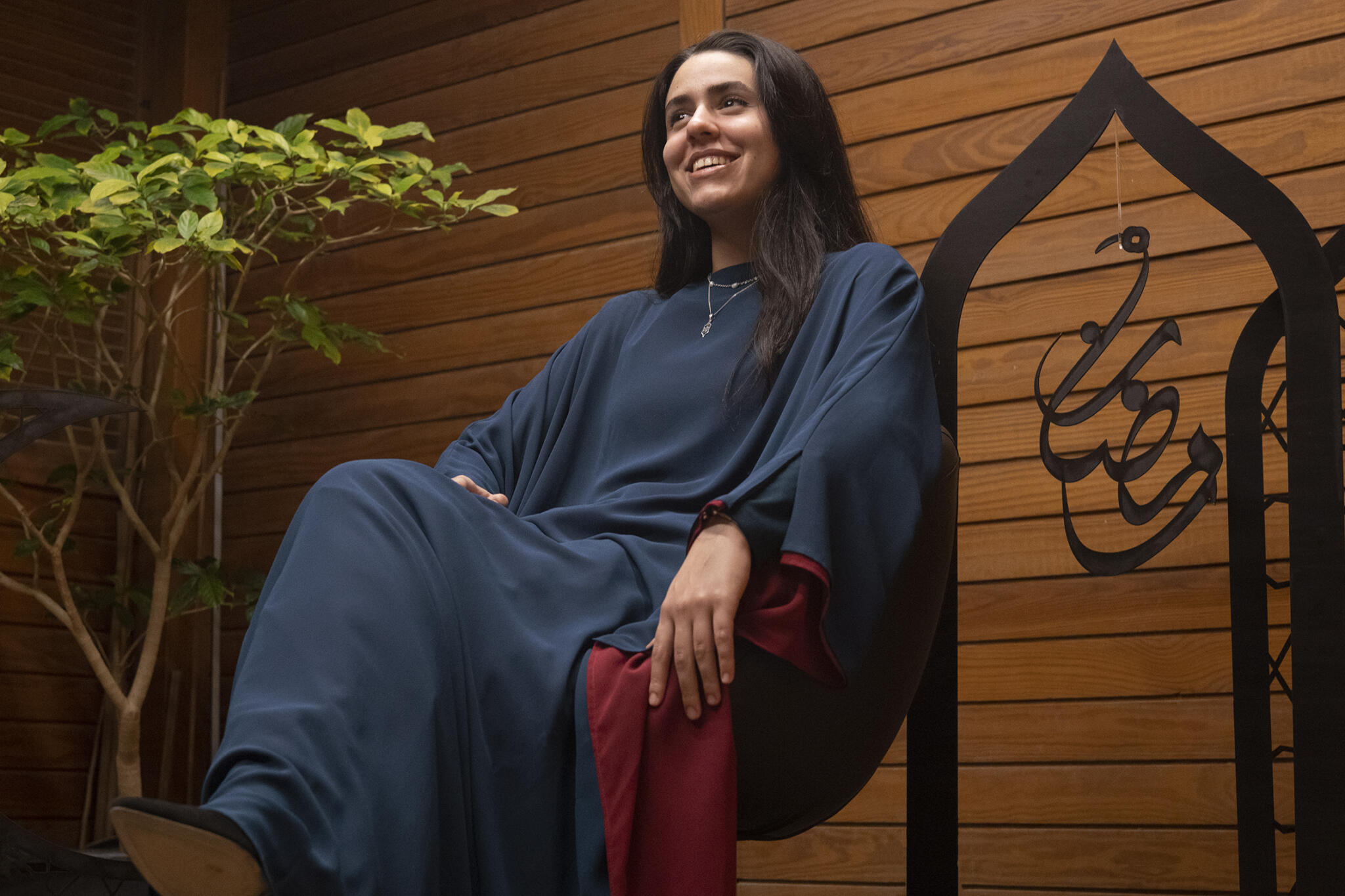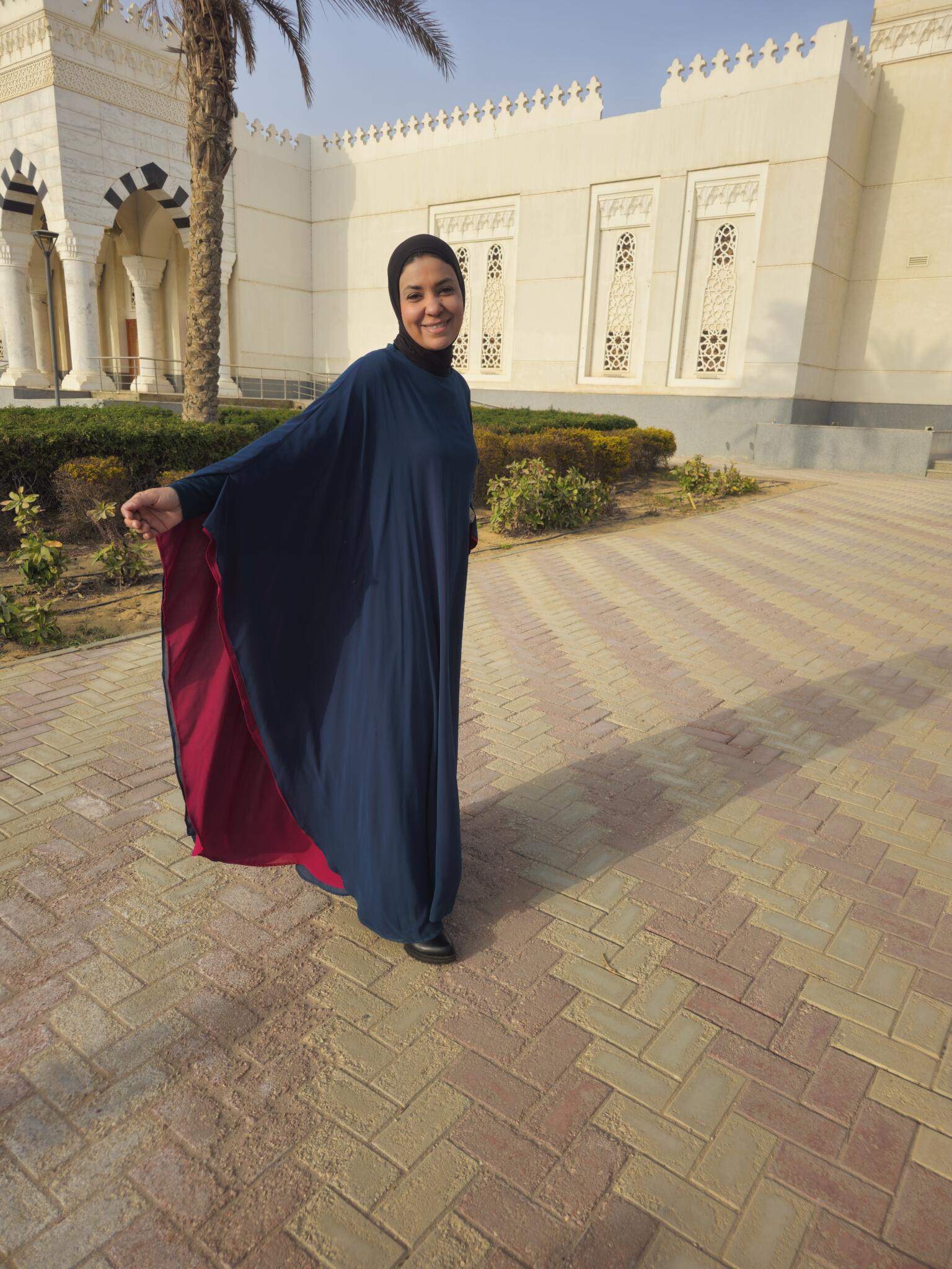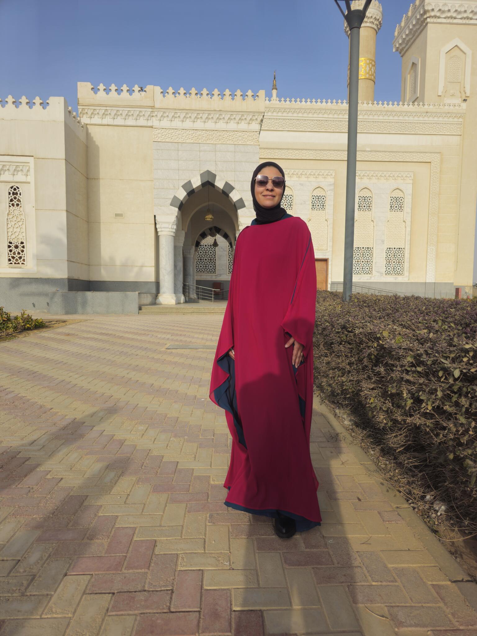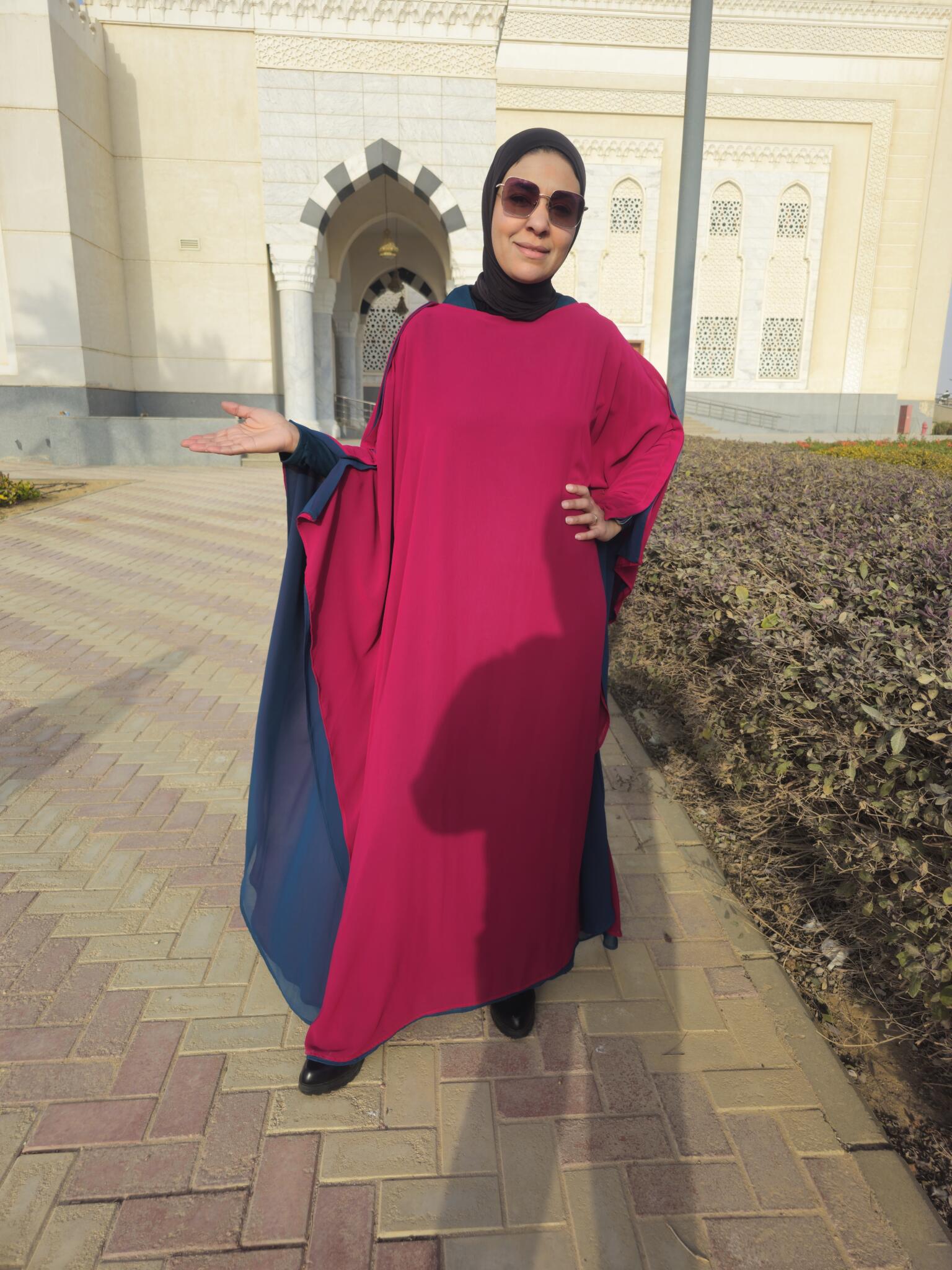 This unique reversible Ramadan abaya offers two stunning looks in one design, allowing you to wear it on either side in burgundy or dark royal turquoise for versatile styling.