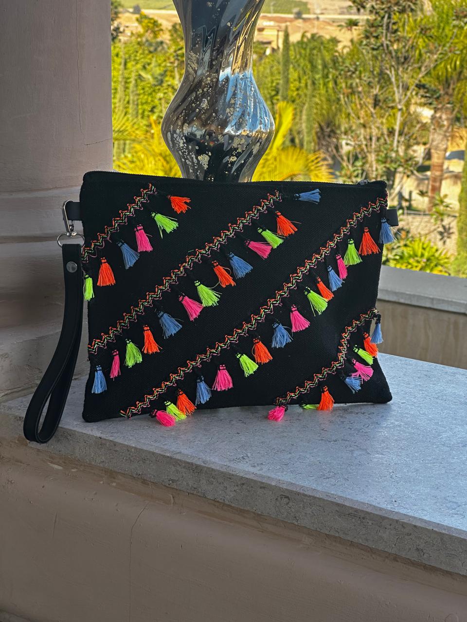 Black clutch decorated with colorful tassels bringing with it the lovely ramadan vibes