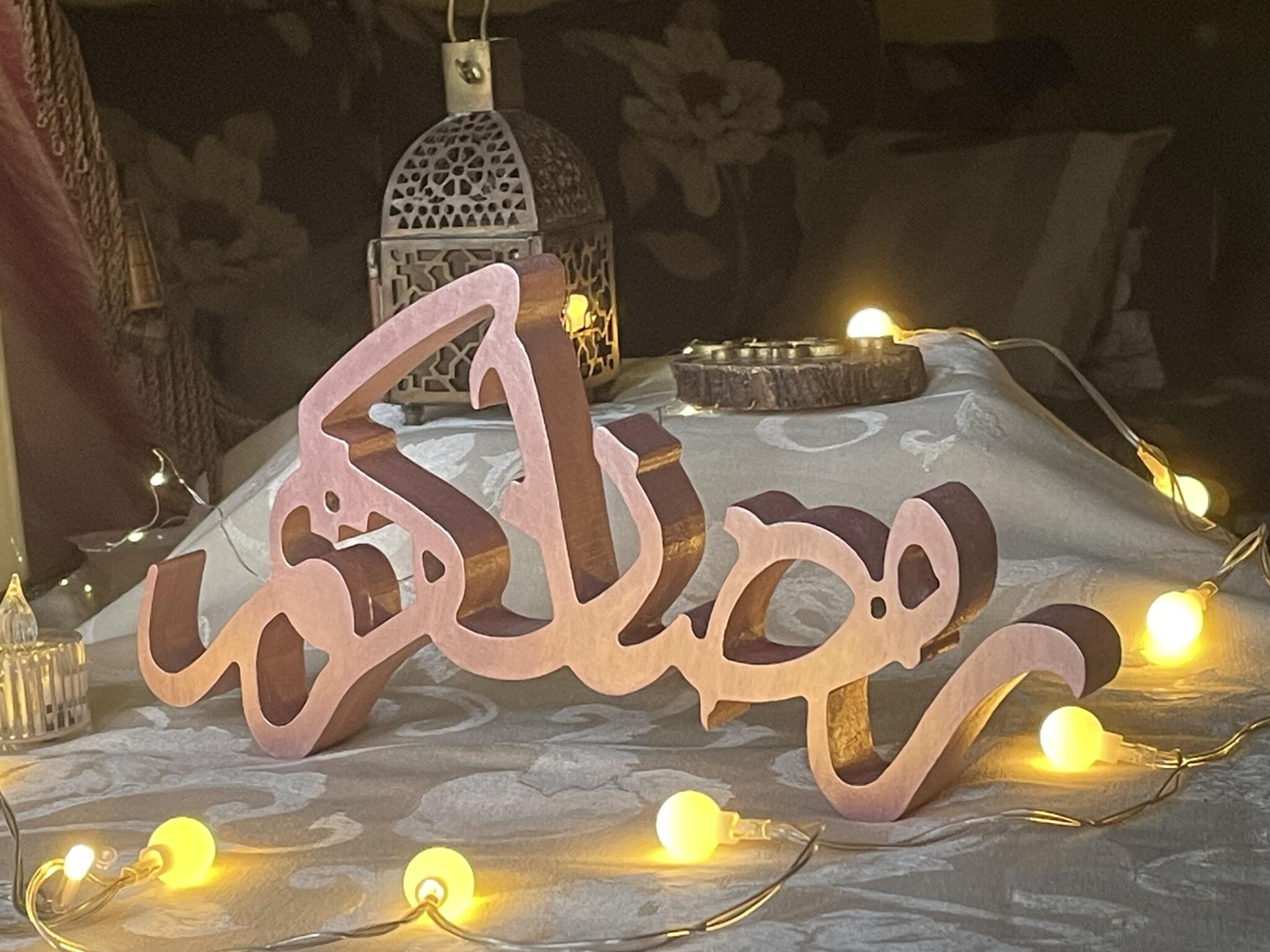 Add a touch of grace to your coffee table with this handcrafted Ramadan script sign.