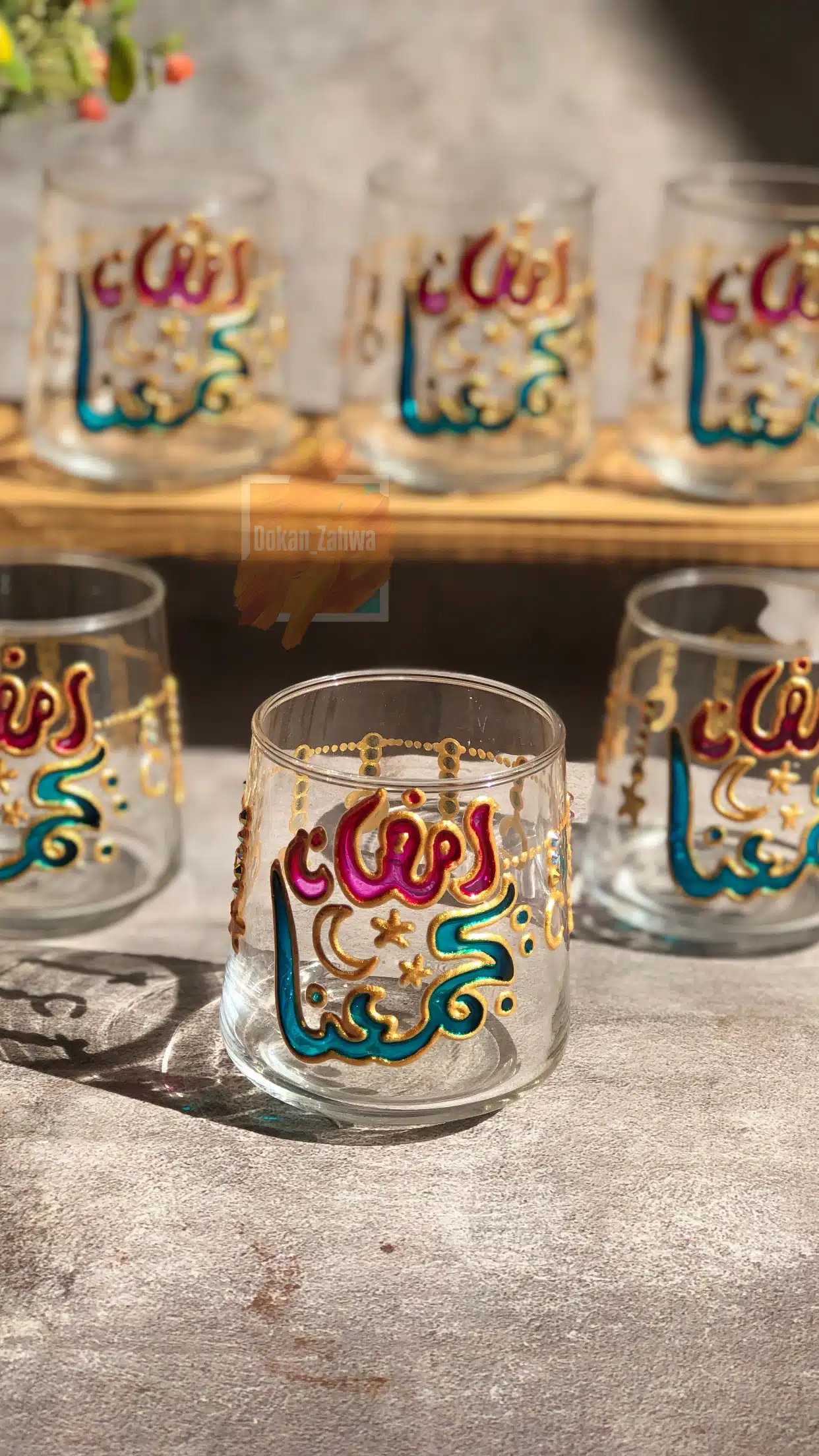 Painted Ramadan ygmana on cups decorated with stars and half moon