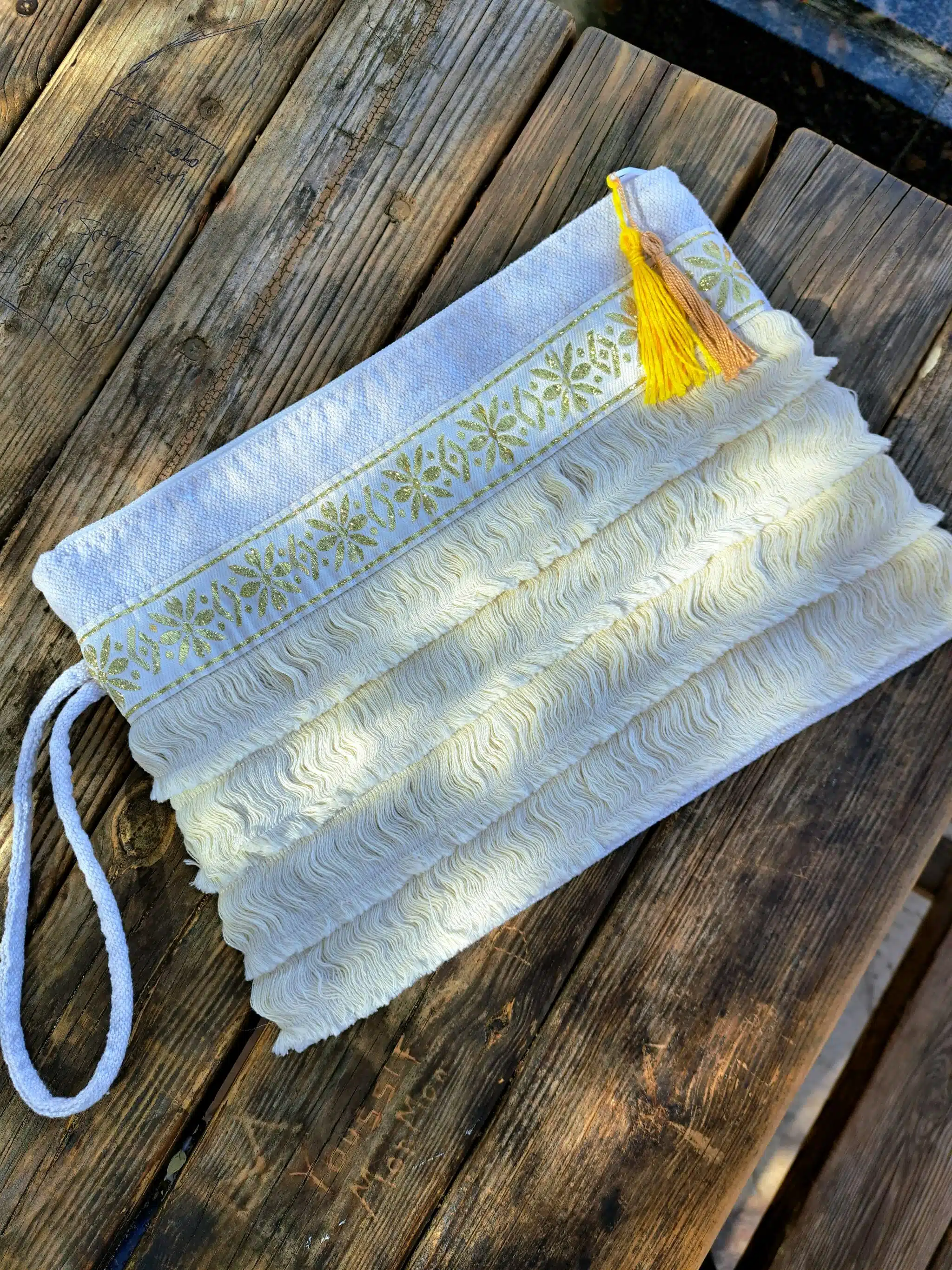 Handmade textile Ramdan clutches, with white inner coating & zipper.